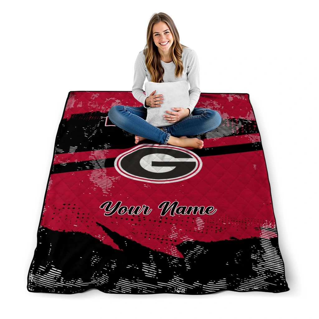 Wrap yourself in warmth and pride with the Customized Georgia Bulldogs Brushstroke Layers Red Quilt Blanket from the Georgia Bulldogs Blankets collection at Yes That Blanket. Made from 100% premium quilting-weight polyester blended with a touch of microfiber, this quilt offers a smooth, soft finish you’ll love. Choose between two quilting styles—Stipple or Diagonal—and enjoy the comfort of a cotton-filled layer inside that adds extra coziness for every season. The border is available in classic black or white, giving your design a clean, timeless edge.