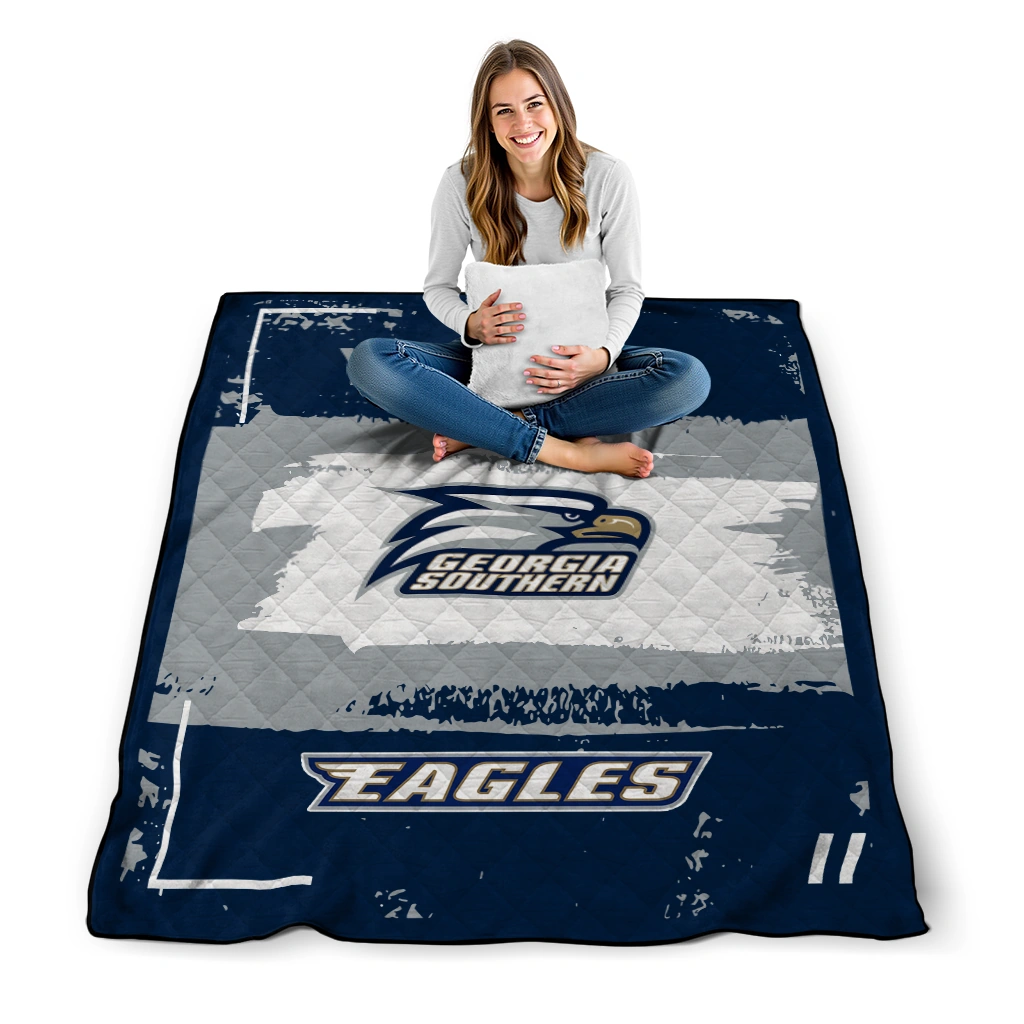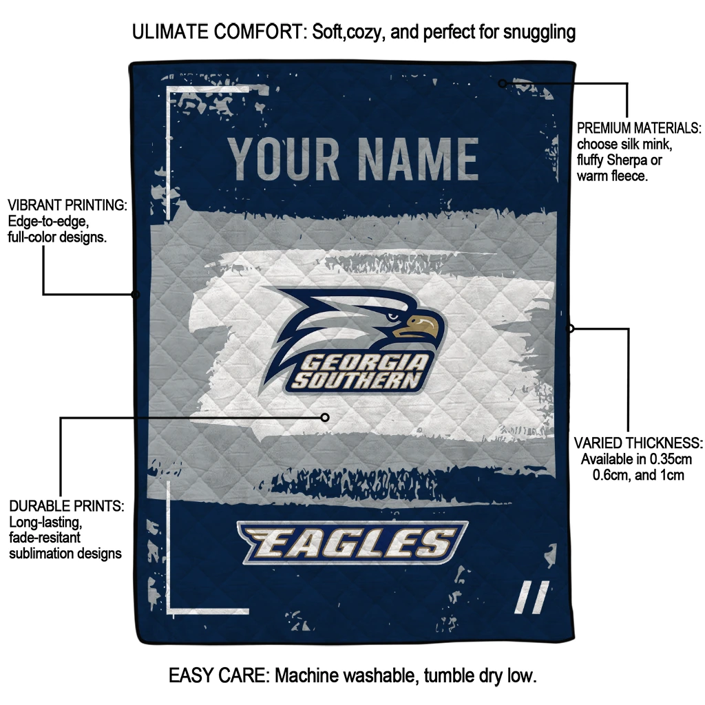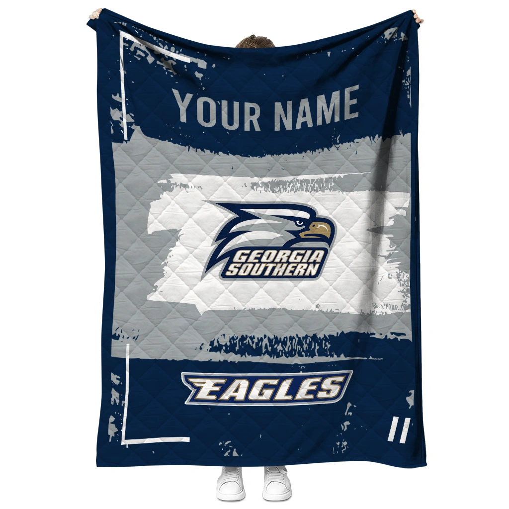 Customized Georgia Southern Eagles Grunge Patch Blue White Quilt Blanket