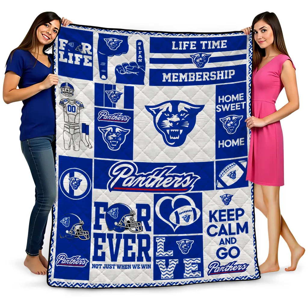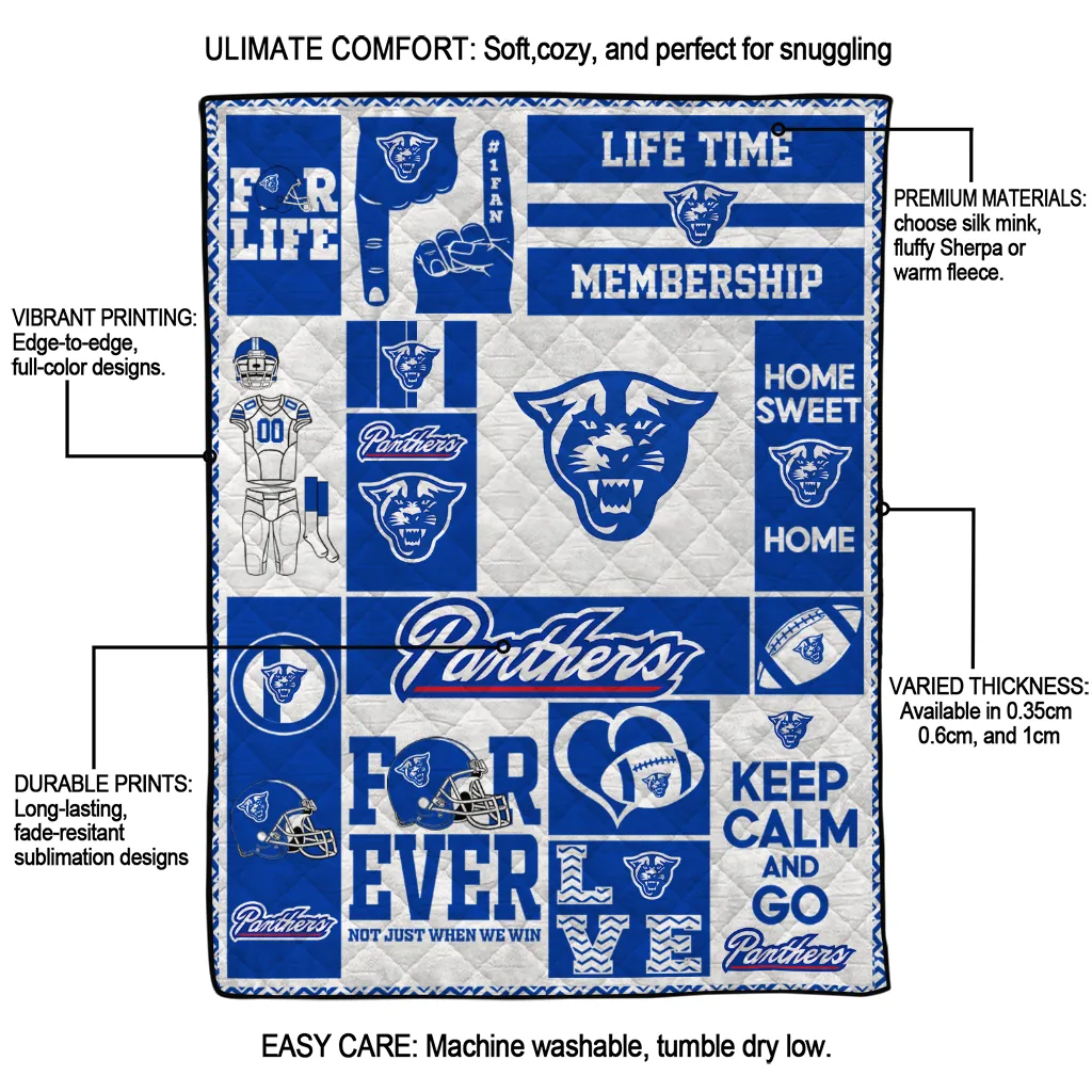 The Customized Georgia State Panthers Helmet Passion Blue Quilt Blanket is more than a blanket—it’s everyday comfort, thoughtfully made. Crafted from premium quilting fabric with a soft microfiber touch, it offers a smooth hand-feel and lasting coziness. Layered quilting with a cotton-filled core provides adaptable warmth across seasons while maintaining a clean, tailored look on your bed or sofa.