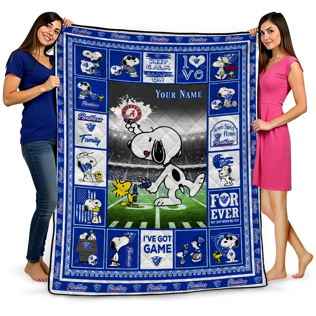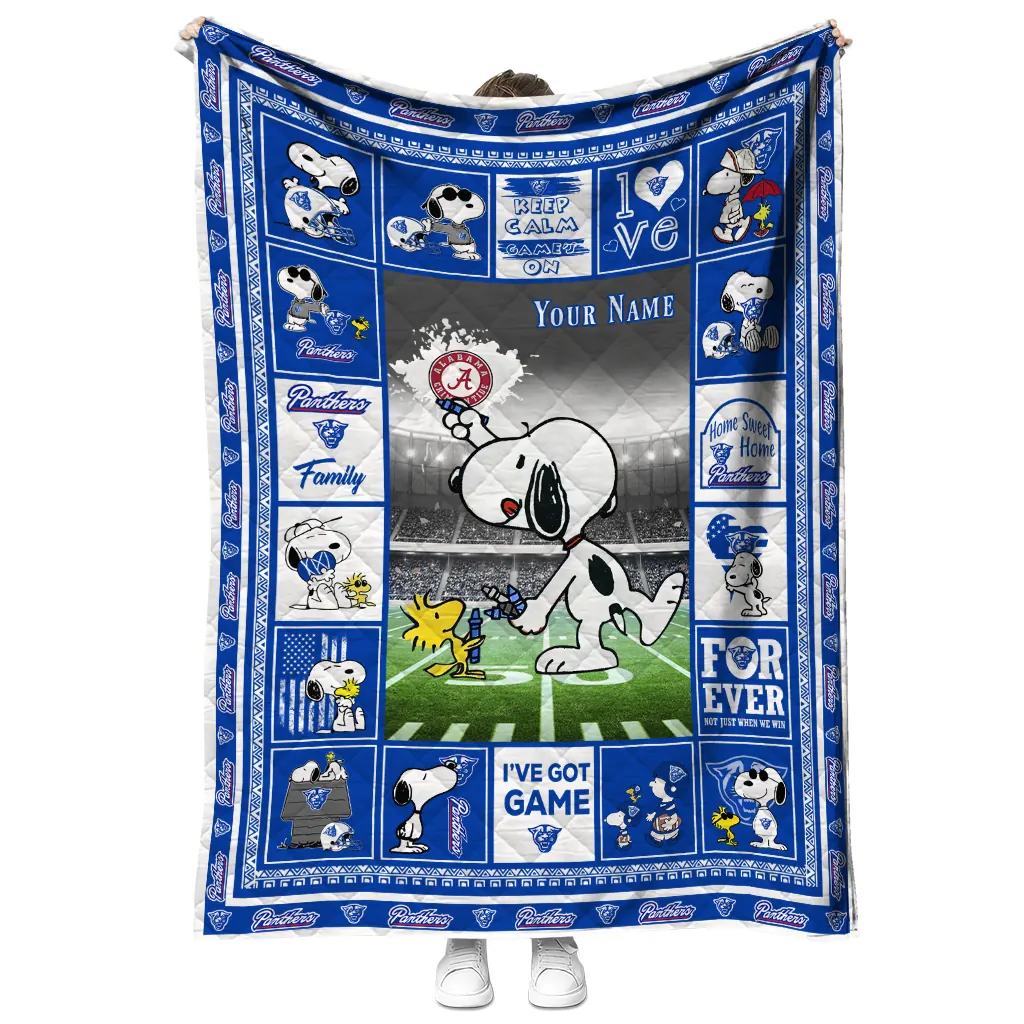 Customized Georgia State Panthers Snoopy Coach Blue Quilt Blanket