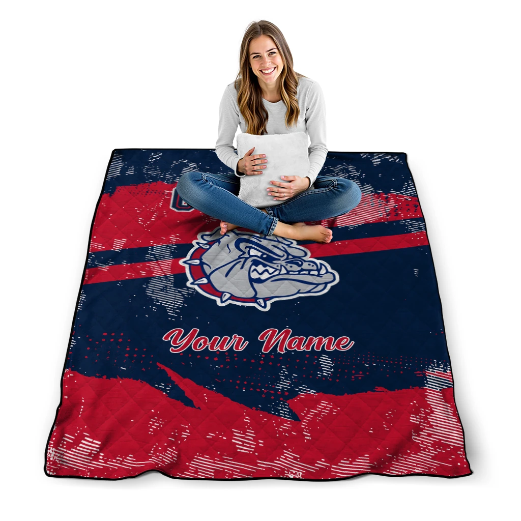 Customized Gonzaga Bulldogs Brushstroke Layers Blue Quilt Blanket