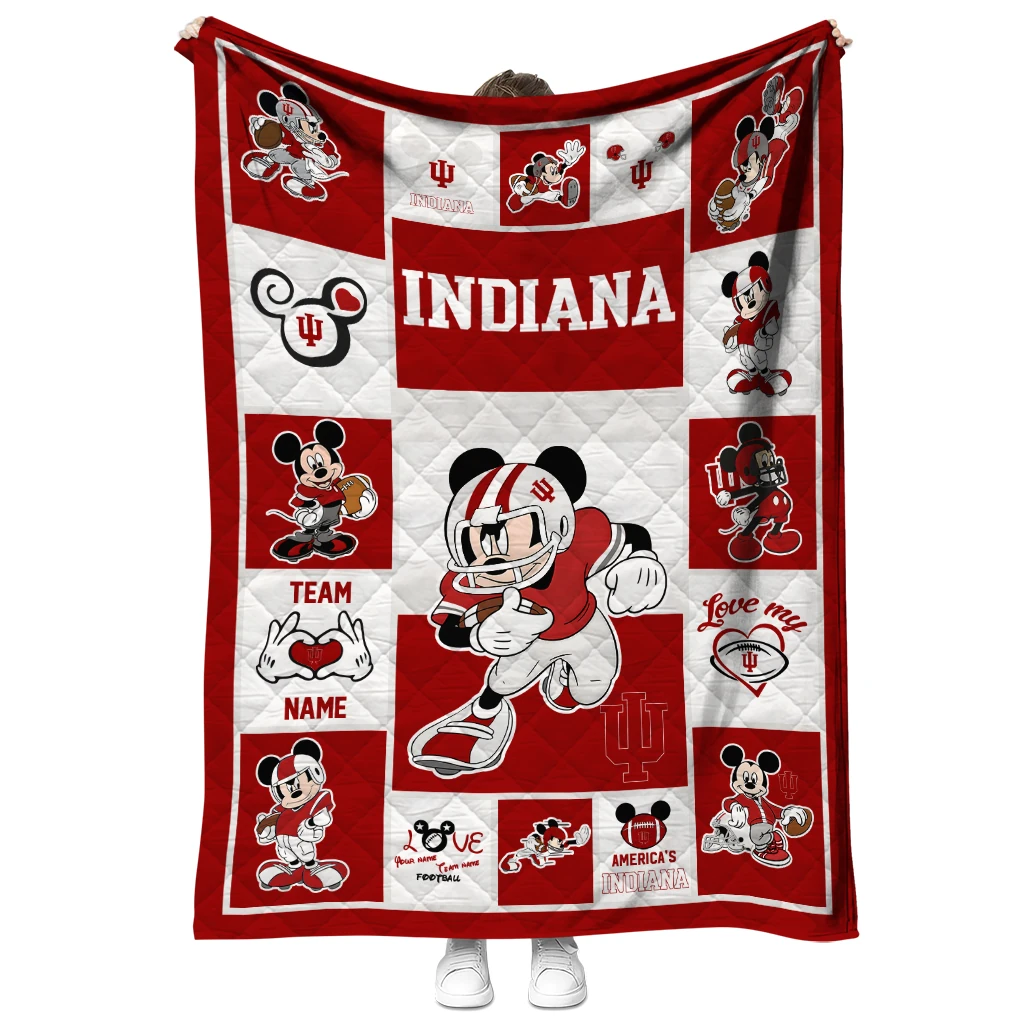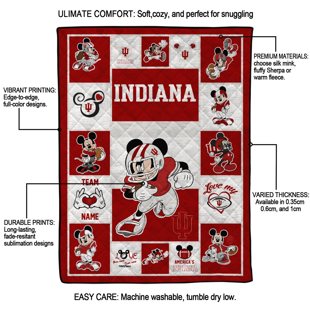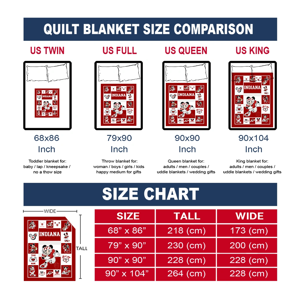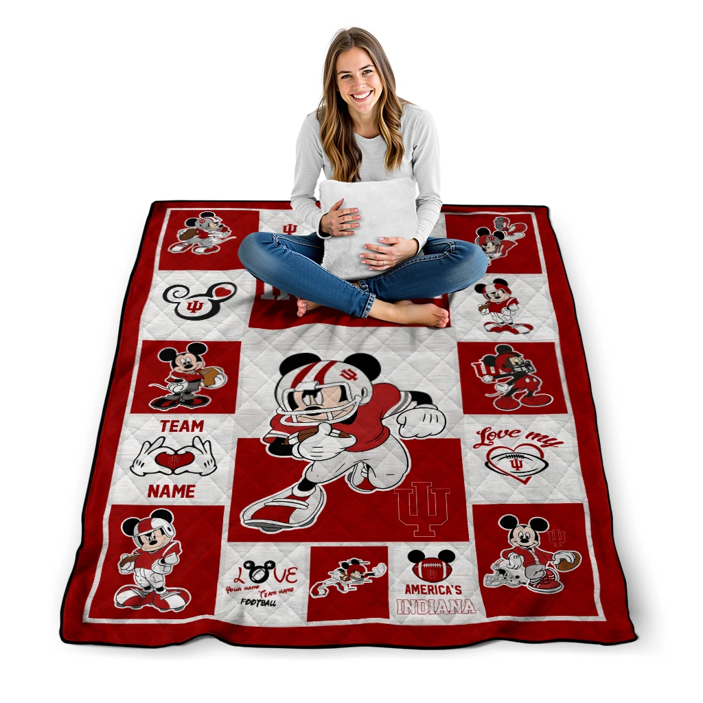 Wrap yourself in warmth and pride with the Customized Indiana Hoosiers Mickey Crimson Red White Quilt Blanket from the Indiana Hoosiers Blankets collection at Yes That Blanket. Made from 100% premium quilting-weight polyester blended with a touch of microfiber, this quilt offers a smooth, soft finish you’ll love. Choose between two quilting styles—Stipple or Diagonal—and enjoy the comfort of a cotton-filled layer inside that adds extra coziness for every season. The border is available in classic black or white, giving your design a clean, timeless edge.