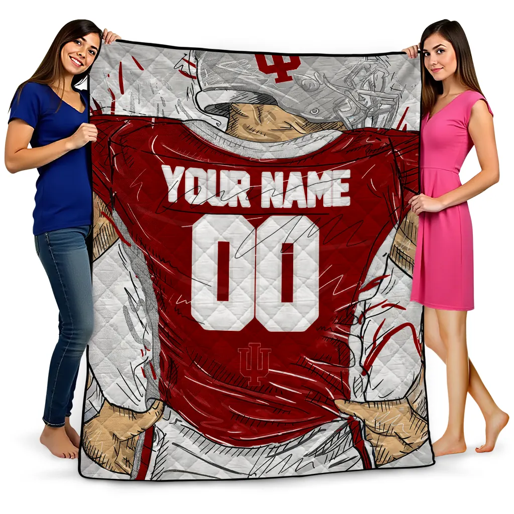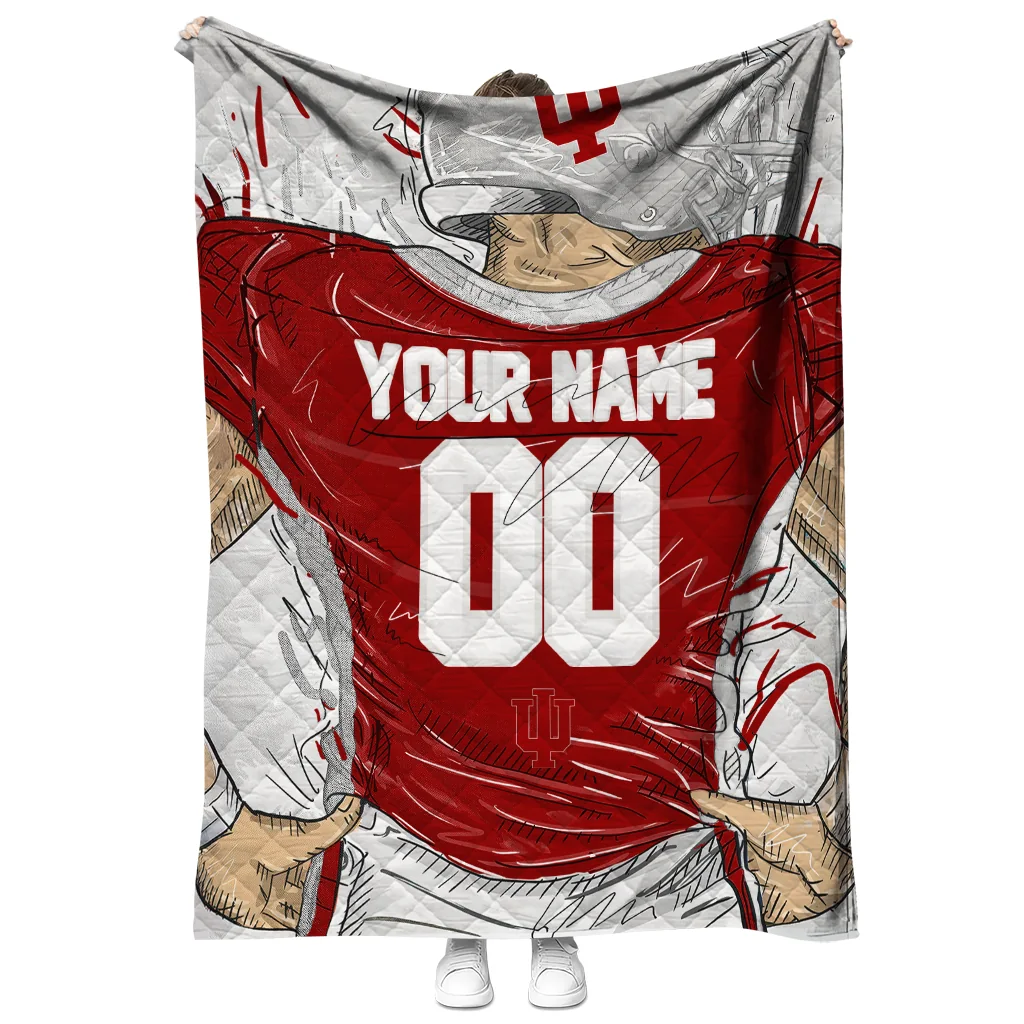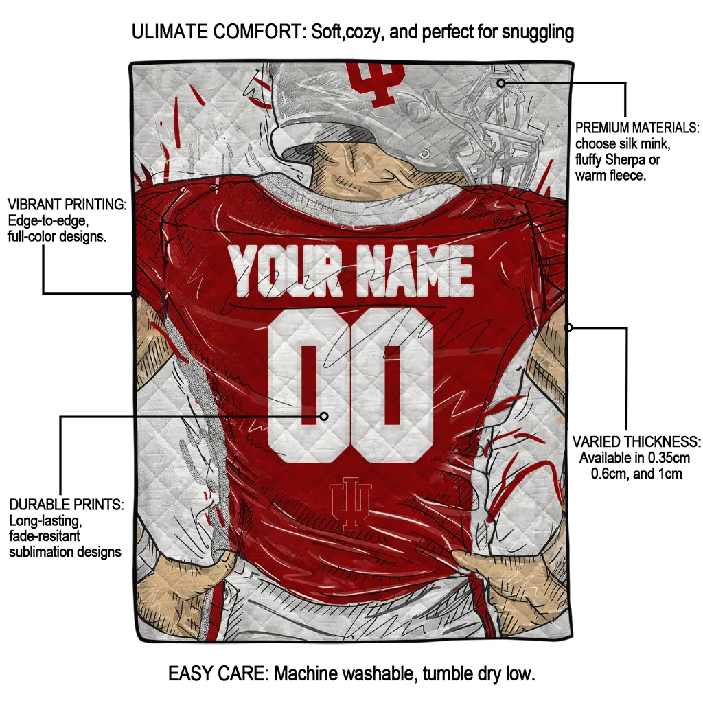 Customized Indiana Hoosiers Player Sketch Red Gray Quilt Blanket