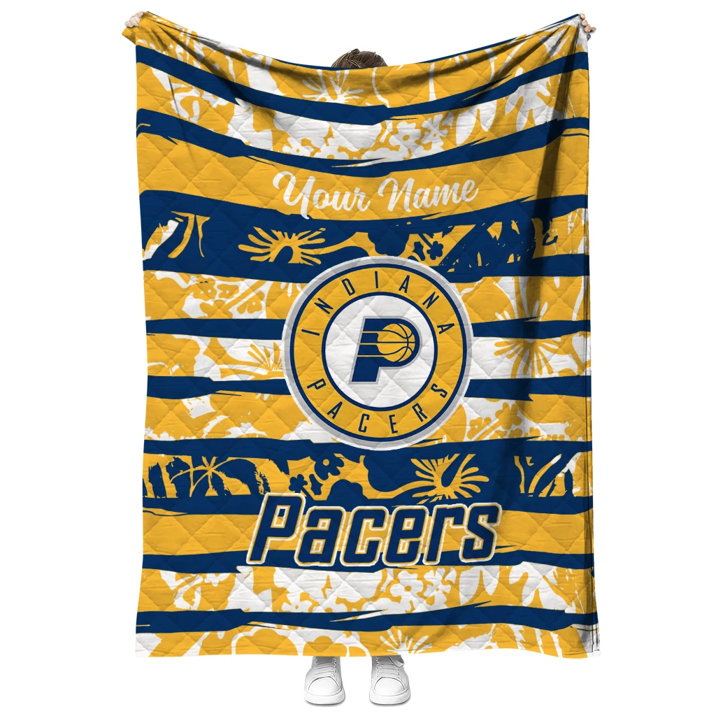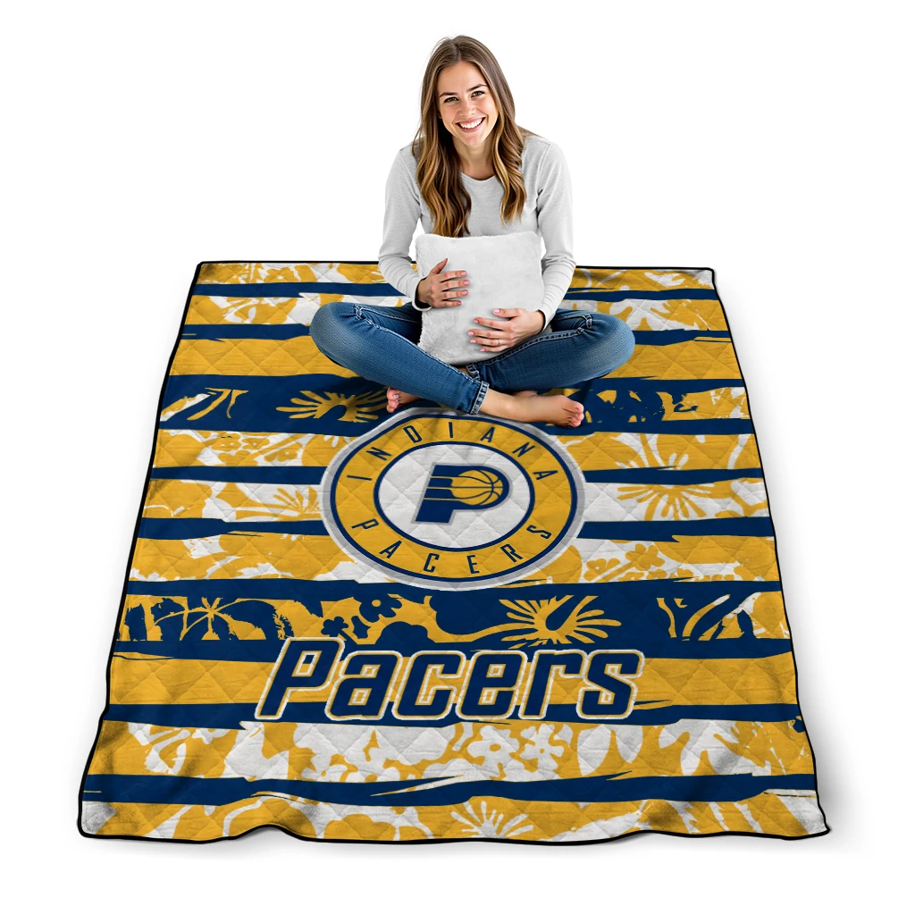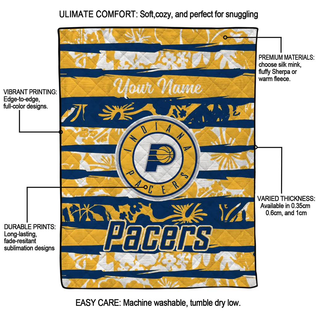 Customized Indiana Pacers Layered Florals Blue White Quilt Blanket