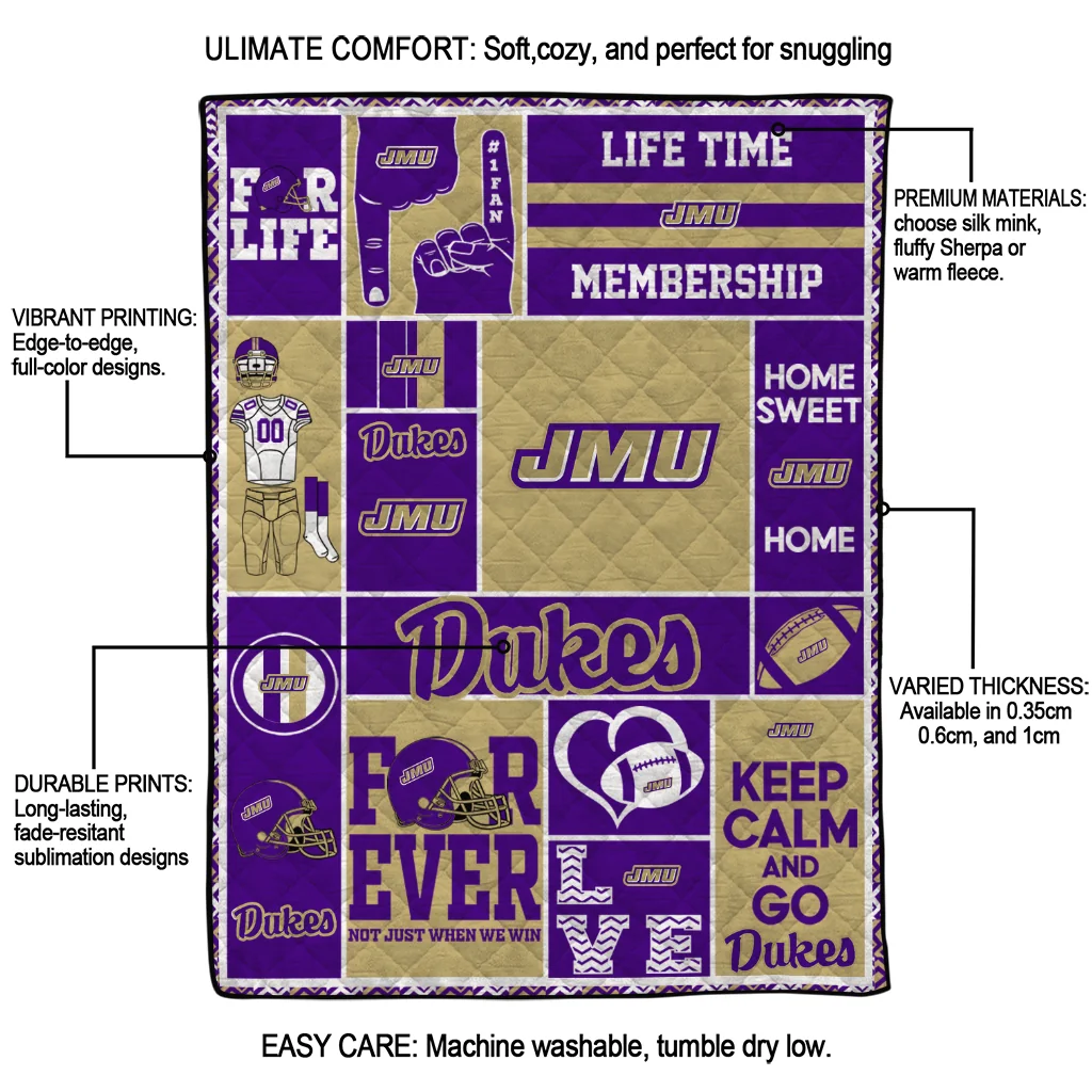 Be the first to review “Customized James Madison Dukes Helmet Passion Purple Quilt Blanket”