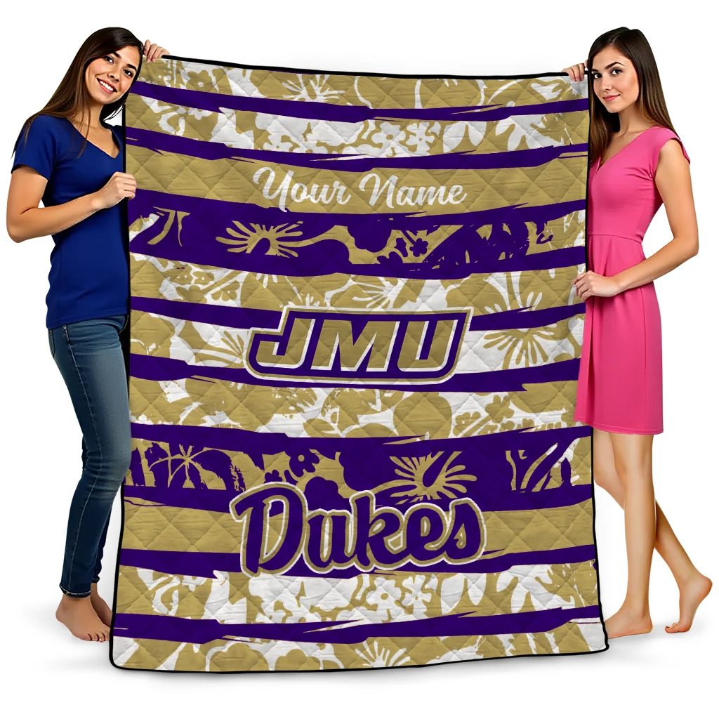 Customized James Madison Dukes Layered Florals Purple White Quilt Blanket