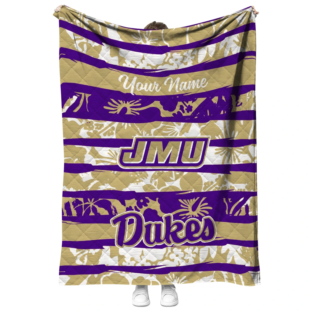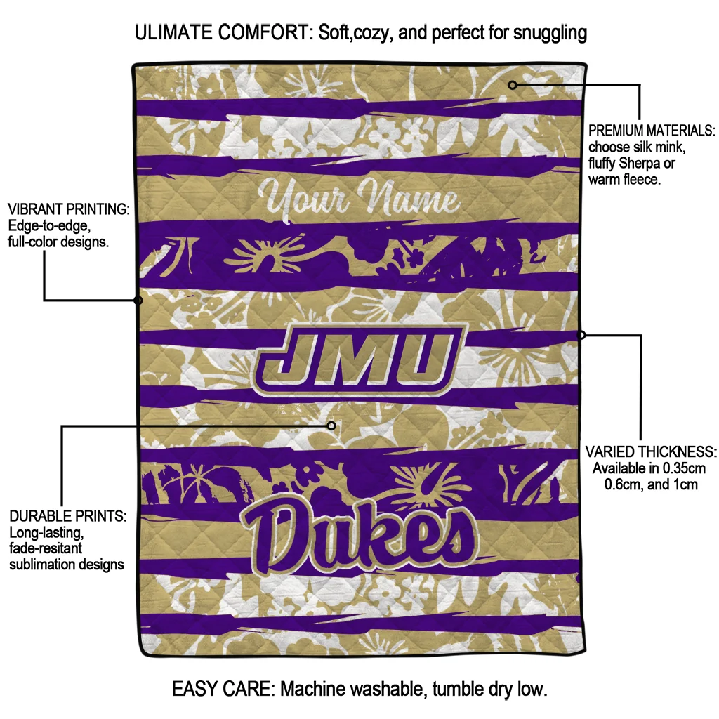 Wrap yourself in warmth and pride with the Customized James Madison Dukes Layered Florals Purple White Quilt Blanket from the James Madison Dukes Blankets collection at Yes That Blanket. Made from 100% premium quilting-weight polyester blended with a touch of microfiber, this quilt offers a smooth, soft finish you’ll love. Choose between two quilting styles—Stipple or Diagonal—and enjoy the comfort of a cotton-filled layer inside that adds extra coziness for every season. The border is available in classic black or white, giving your design a clean, timeless edge.