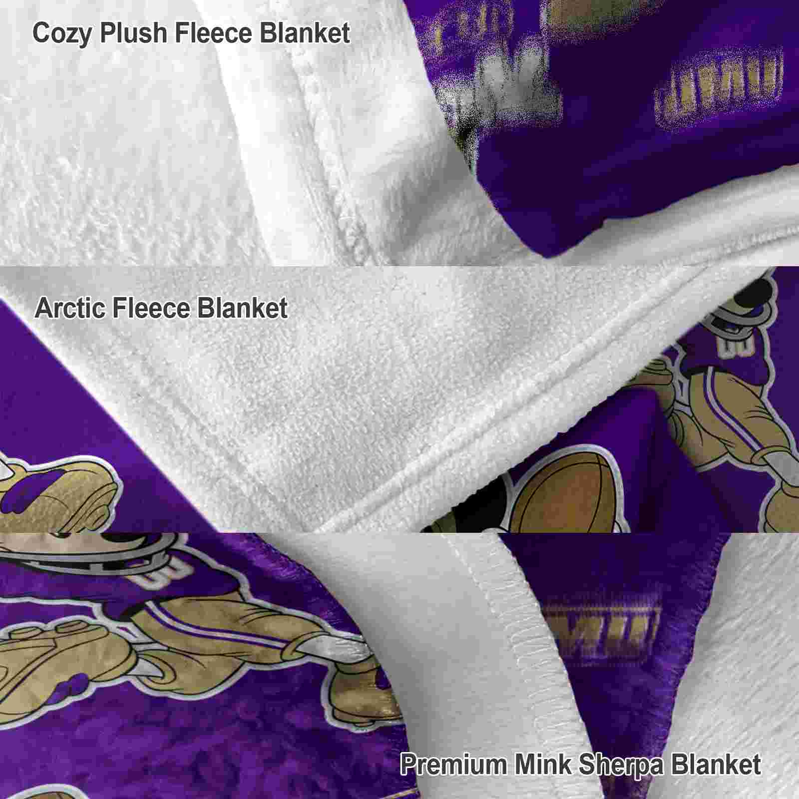 The Customized James Madison Dukes Mickey Purple Blanket isn't just a blanket—it's your connection to the game. Snuggle up while reliving legendary plays or dreaming of future championships. Its bold, team-inspired designs keep your love for the sport front and center, while its easy-care durability means it's always ready for your next adventure. From cheering at home to showcasing your loyalty on the go, this item of NCAA Blankets collection is made for fans who live and breathe the game.