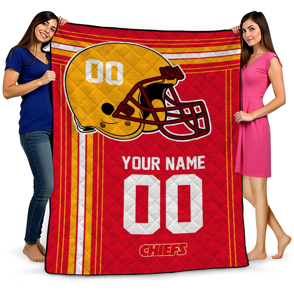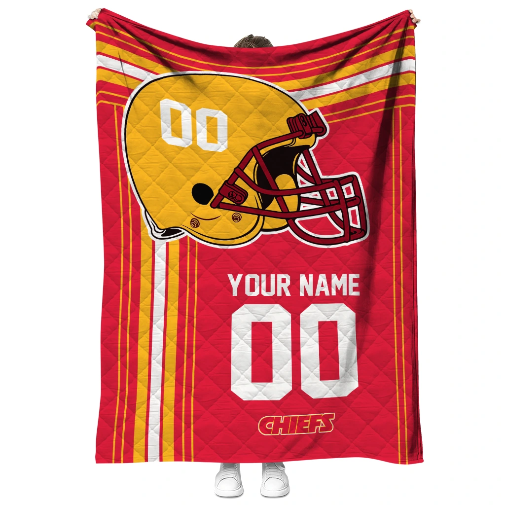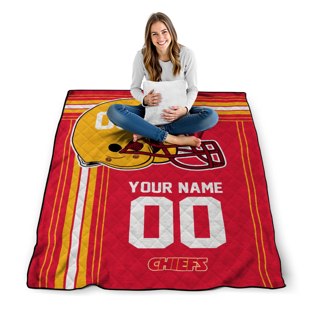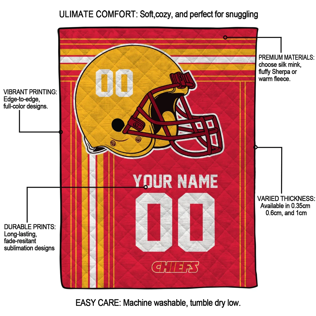 The Customized Kansas City Chiefs Helmet Theme Red Quilt Blanket is more than a blanket—it’s everyday comfort, thoughtfully made. Crafted from premium quilting fabric with a soft microfiber touch, it offers a smooth hand-feel and lasting coziness. Layered quilting with a cotton-filled core provides adaptable warmth across seasons while maintaining a clean, tailored look on your bed or sofa.