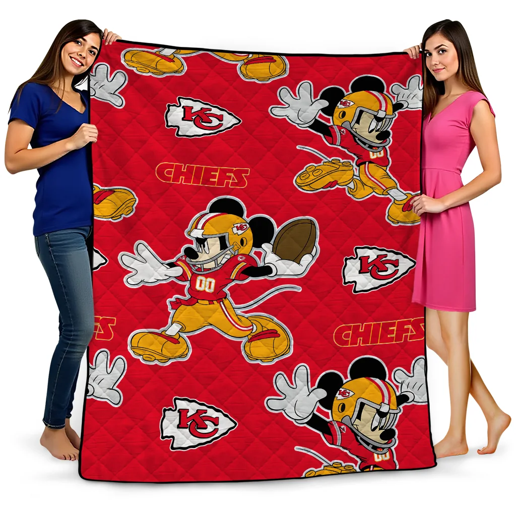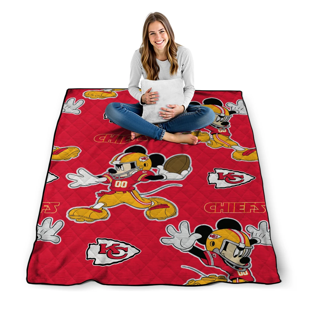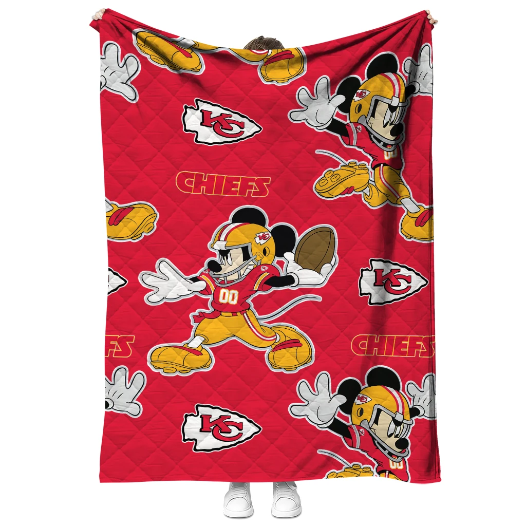 Customized Kansas City Chiefs Mickey Football Red Quilt Blanket