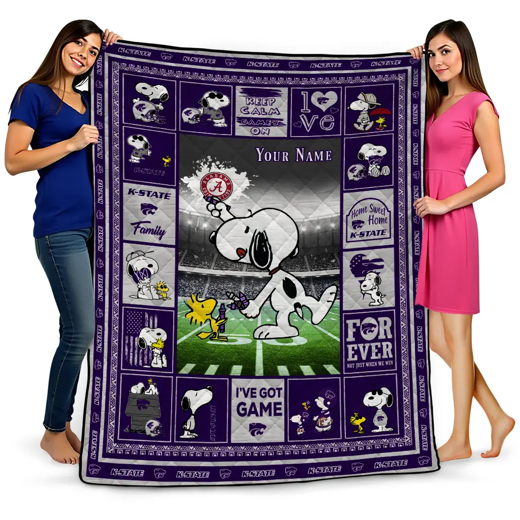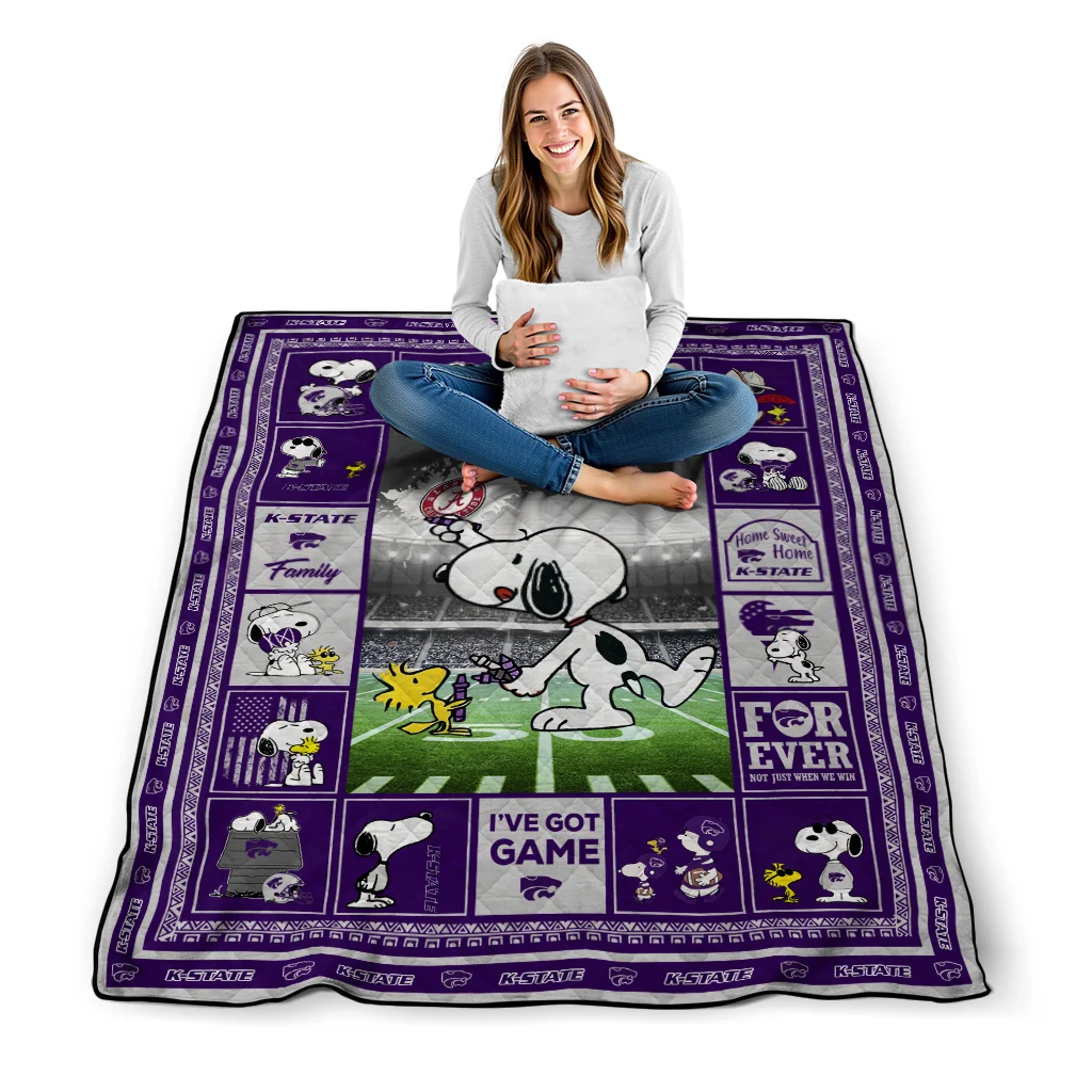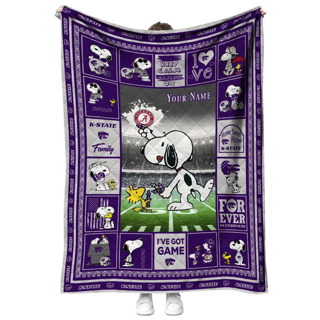 Customized Kansas State Wildcats Snoopy Coach Purple Quilt Blanket