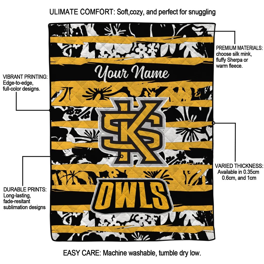 Customized Kennesaw State Owls Layered Florals Gold White Quilt Blanket