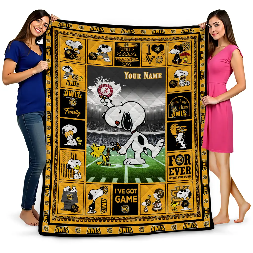 Customized Kennesaw State Owls Snoopy Coach Gold Quilt Blanket