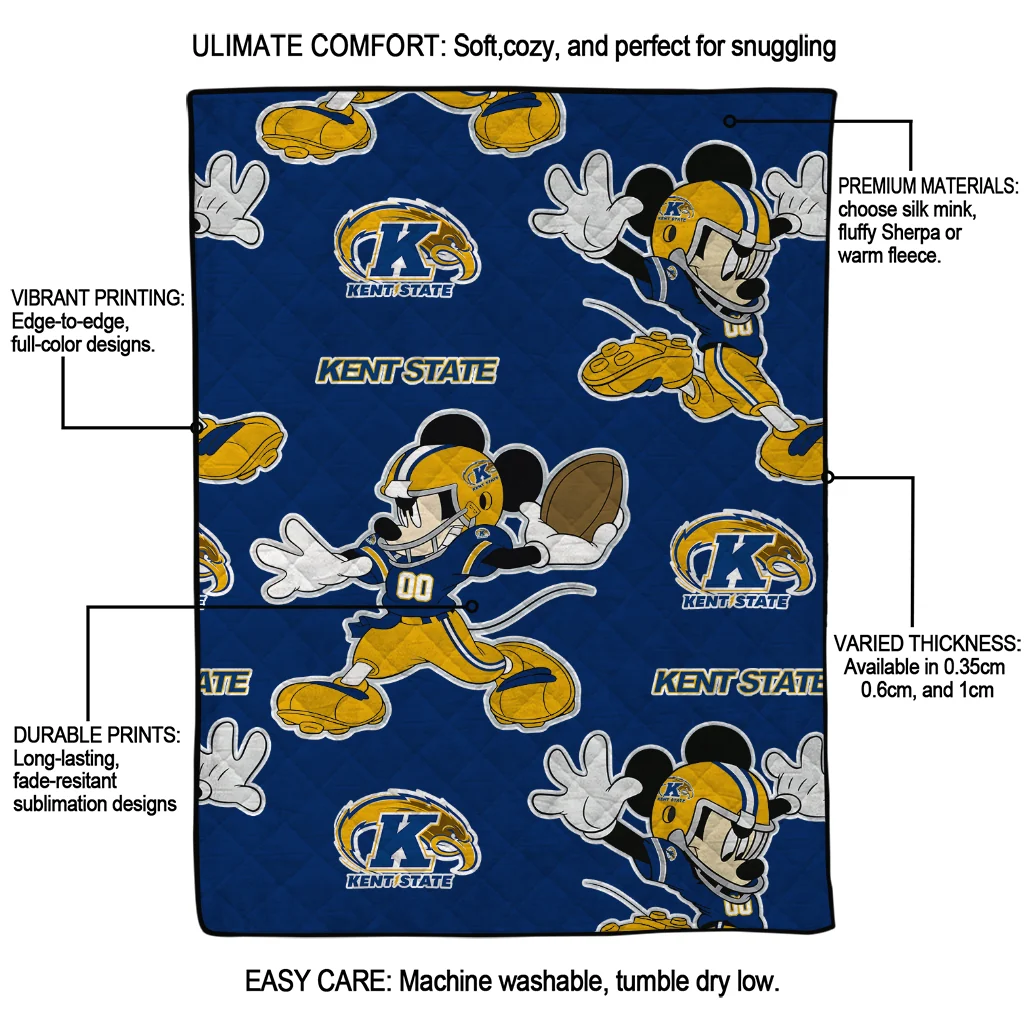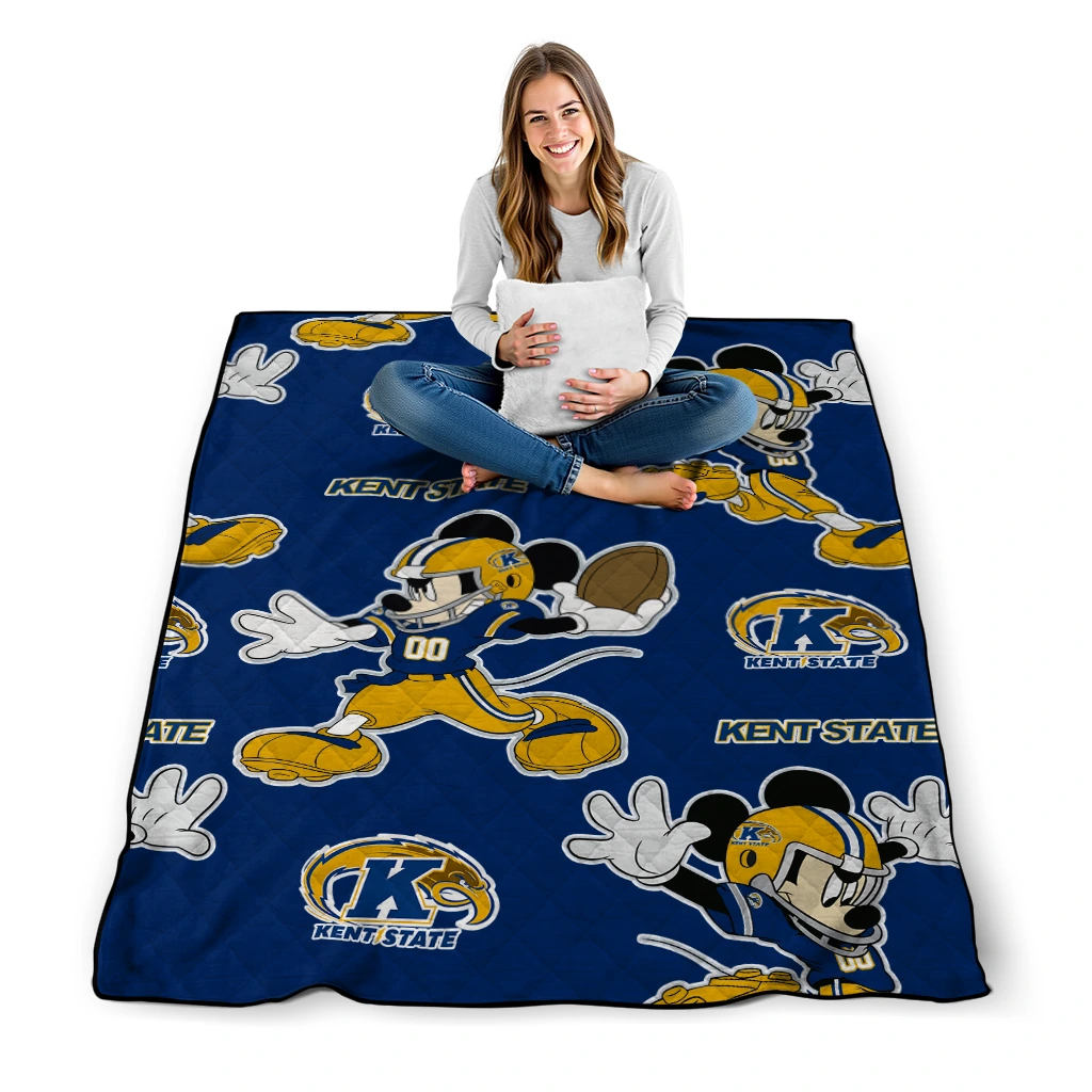 The Customized Kent State Golden Flashes Mickey Football Navy Blue Quilt Blanket is more than a blanket—it’s everyday comfort, thoughtfully made. Crafted from premium quilting fabric with a soft microfiber touch, it offers a smooth hand-feel and lasting coziness. Layered quilting with a cotton-filled core provides adaptable warmth across seasons while maintaining a clean, tailored look on your bed or sofa.