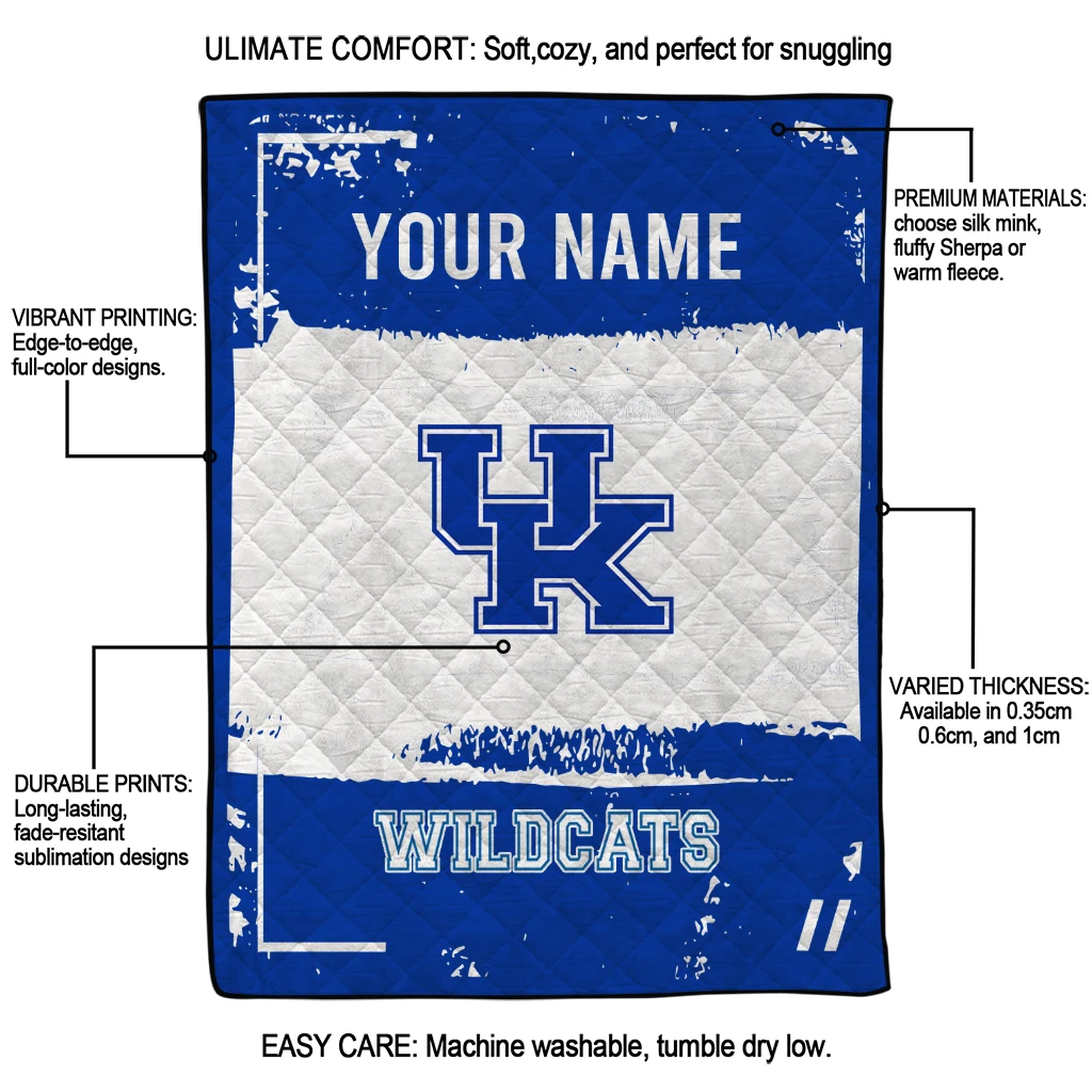 Customized Kentucky Wildcats Grunge Patch Blue White Quilt Blanket