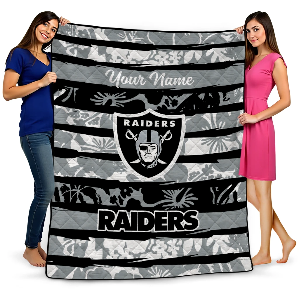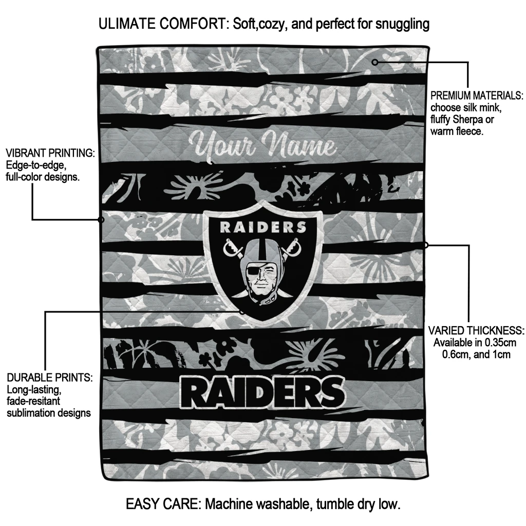 The Customized Las Vegas Raiders Layered Florals Black White Quilt Blanket is more than a blanket—it’s everyday comfort, thoughtfully made. Crafted from premium quilting fabric with a soft microfiber touch, it offers a smooth hand-feel and lasting coziness. Layered quilting with a cotton-filled core provides adaptable warmth across seasons while maintaining a clean, tailored look on your bed or sofa.