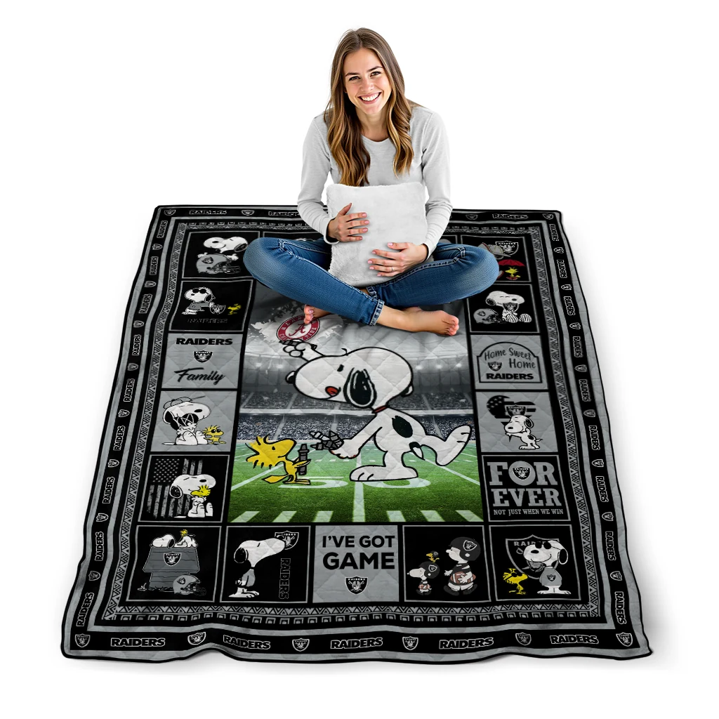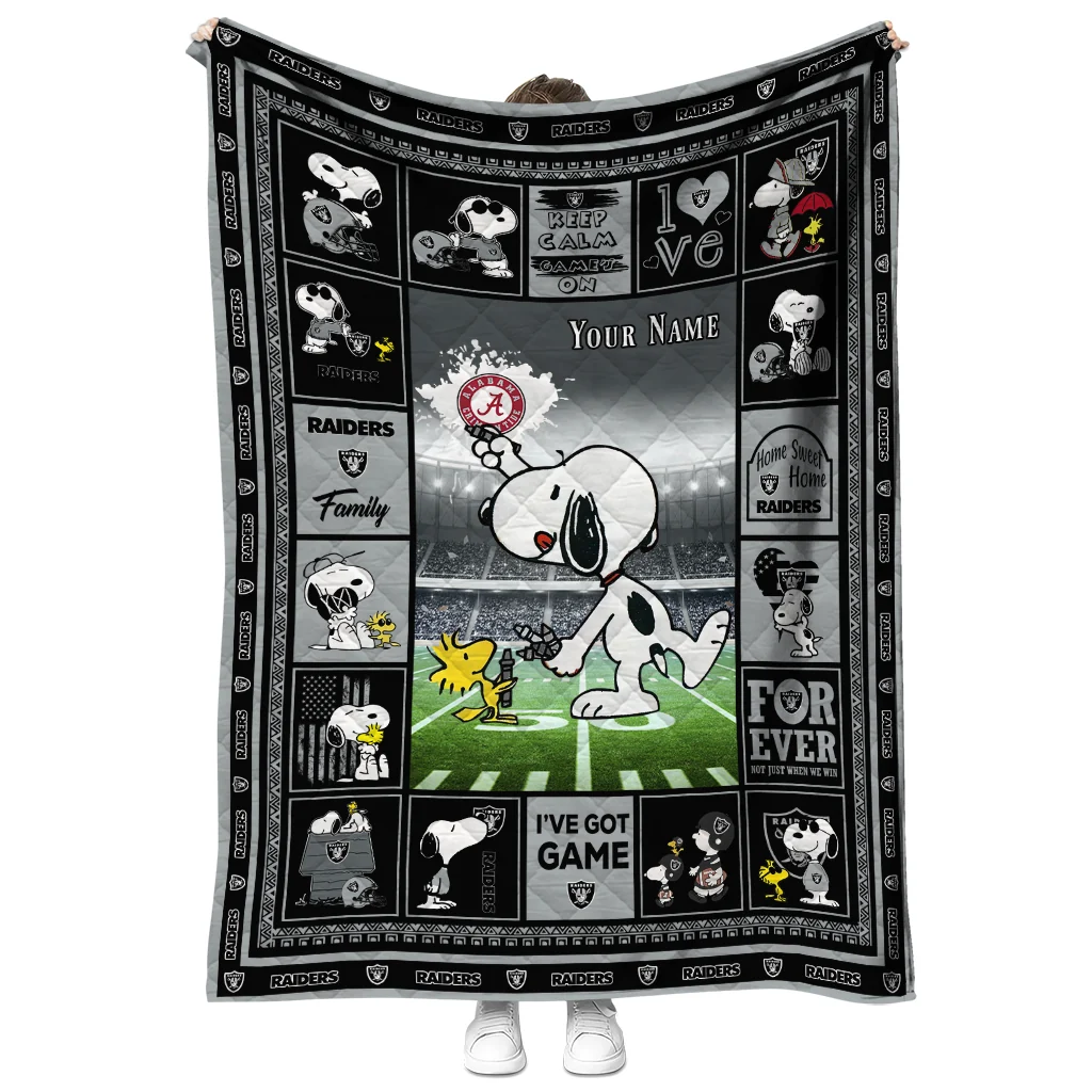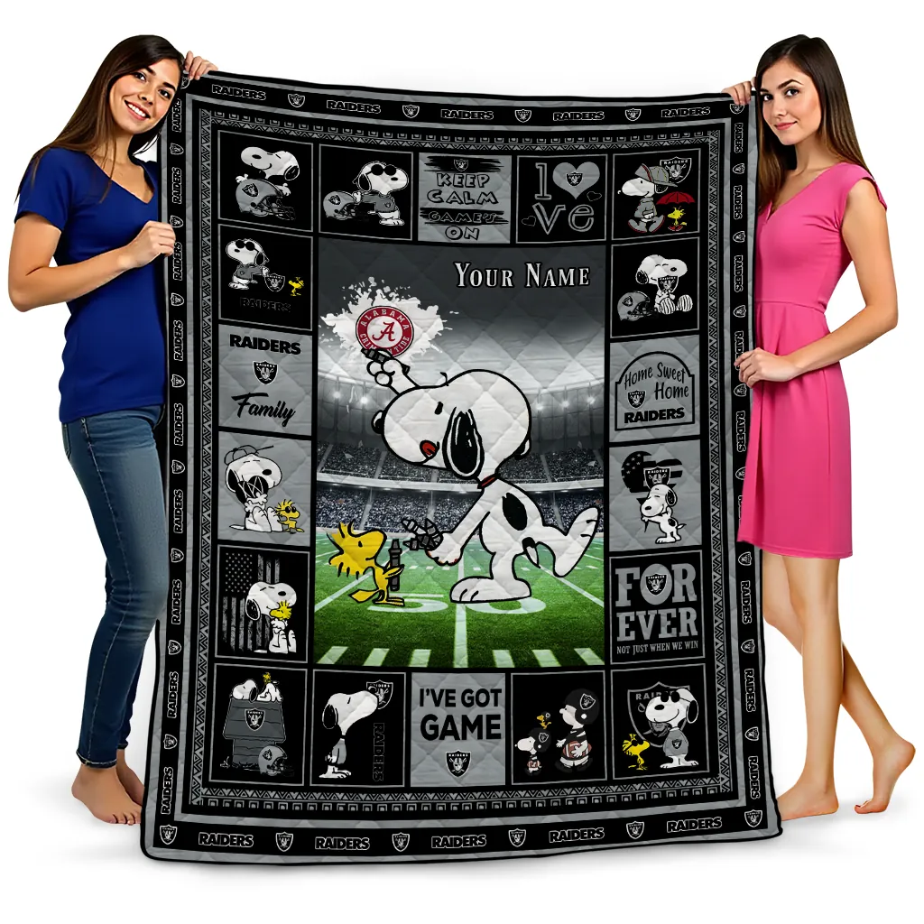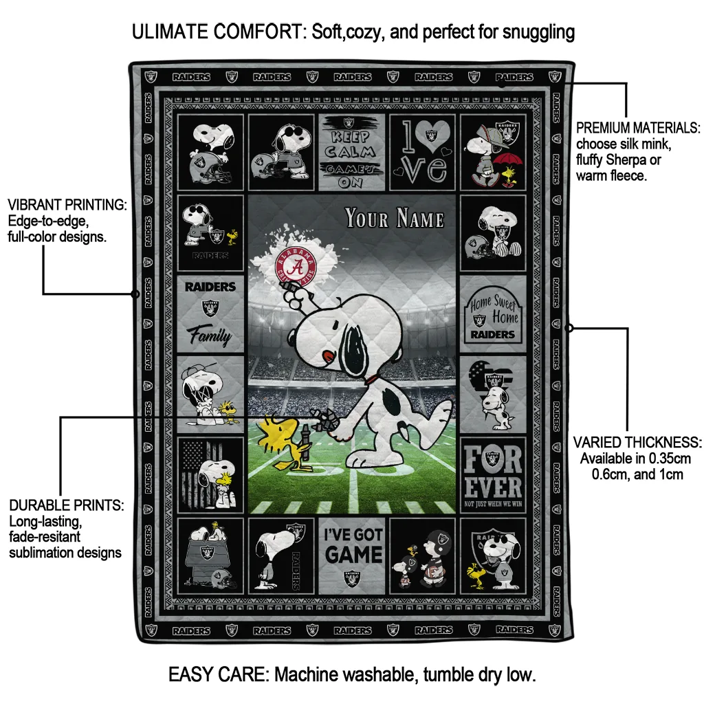 Customized Las Vegas Raiders Snoopy Coach Black Quilt Blanket