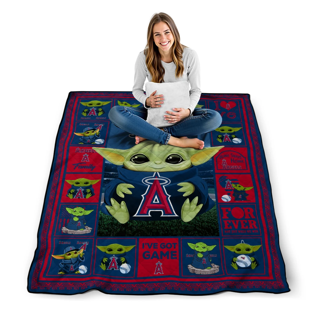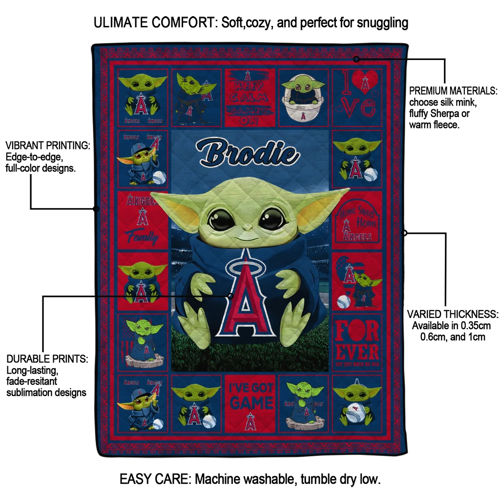 The Customized Los Angeles Angels Yody Baby Motif Blue Quilt Blanket is more than a blanket—it’s everyday comfort, thoughtfully made. Crafted from premium quilting fabric with a soft microfiber touch, it offers a smooth hand-feel and lasting coziness. Layered quilting with a cotton-filled core provides adaptable warmth across seasons while maintaining a clean, tailored look on your bed or sofa.