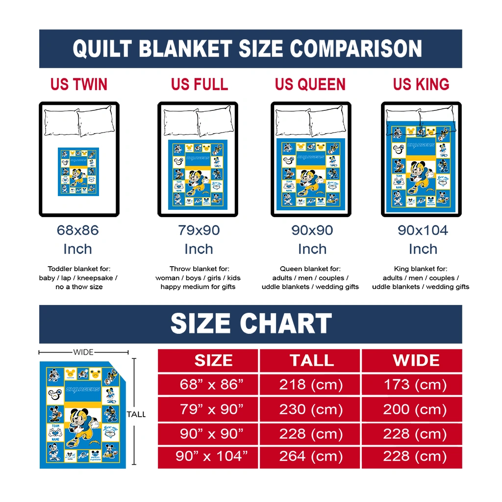 The Customized Los Angeles Chargers Mickey Crimson Blue White Quilt Blanket is more than a blanket—it’s everyday comfort, thoughtfully made. Crafted from premium quilting fabric with a soft microfiber touch, it offers a smooth hand-feel and lasting coziness. Layered quilting with a cotton-filled core provides adaptable warmth across seasons while maintaining a clean, tailored look on your bed or sofa.
