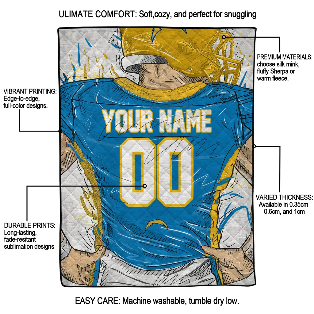 Customized Los Angeles Chargers Player Sketch Blue Gray Quilt Blanket