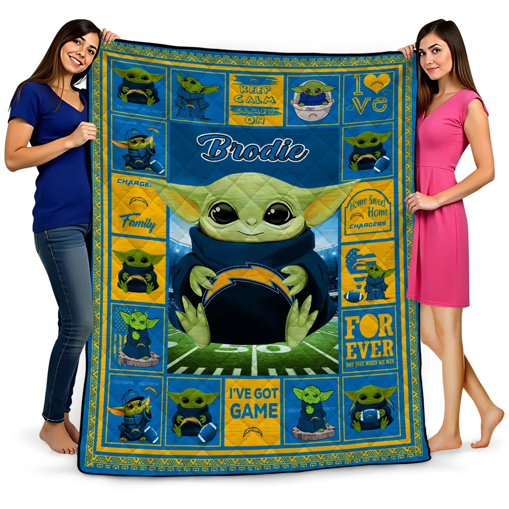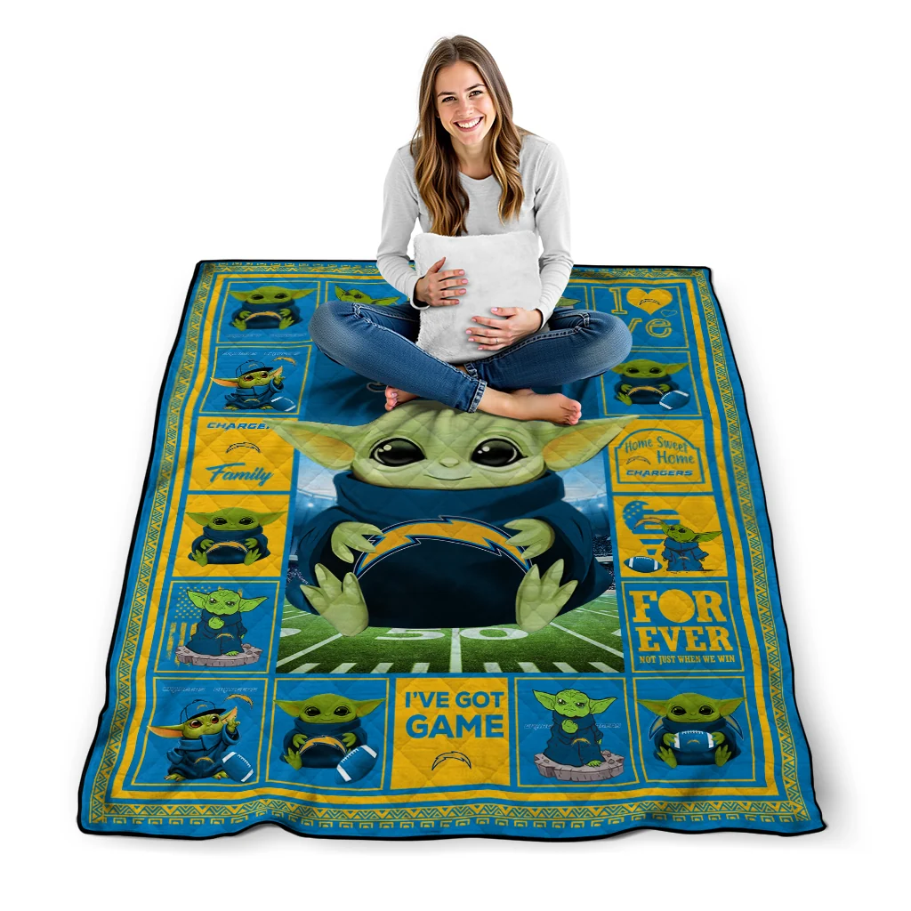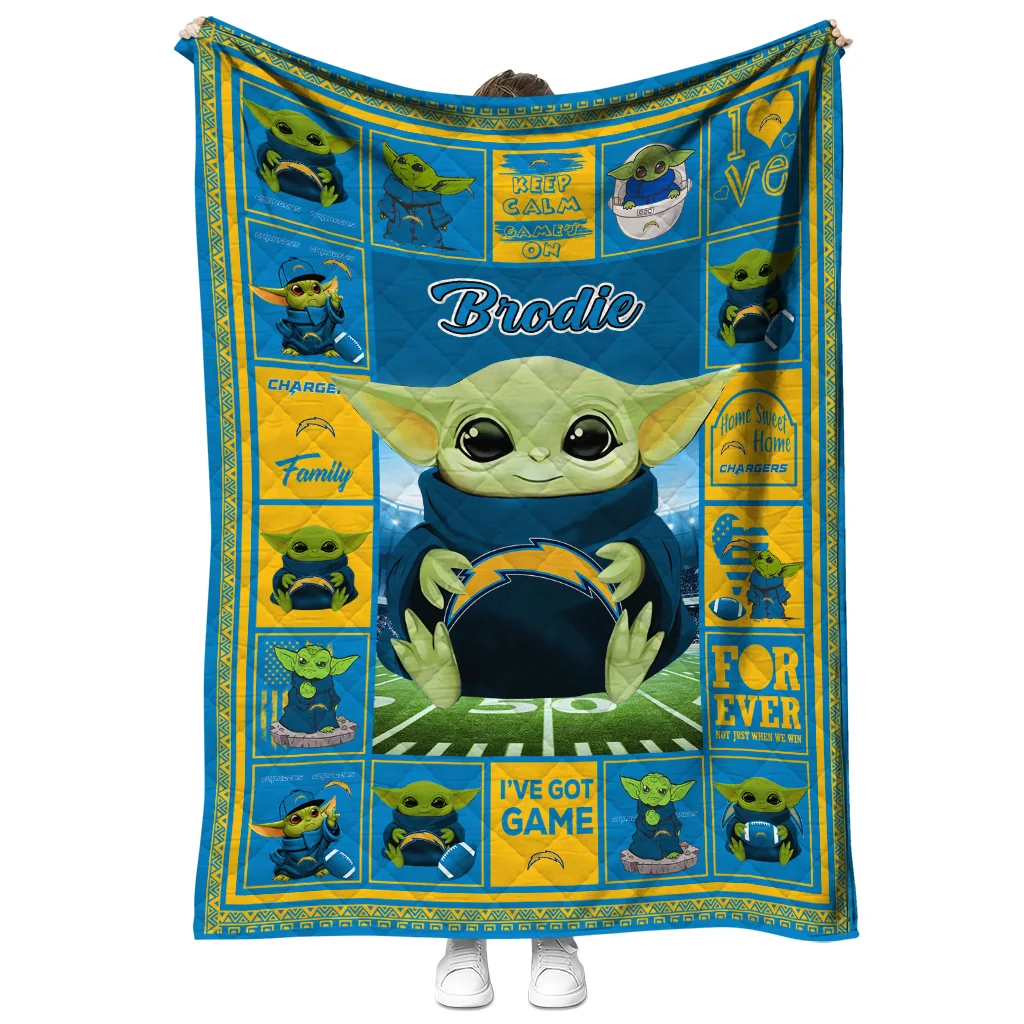 Customized Los Angeles Chargers Yody Baby Pattern Blue Quilt Blanket