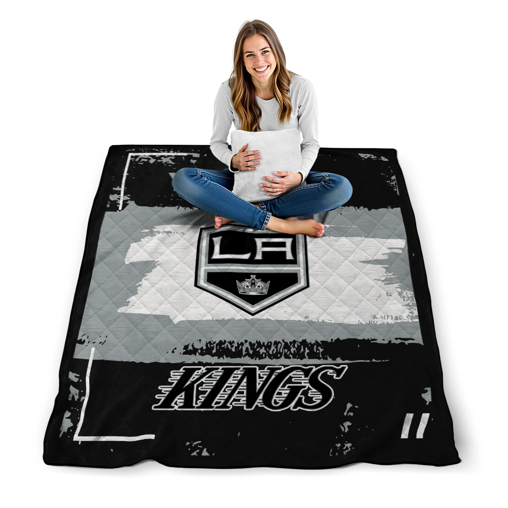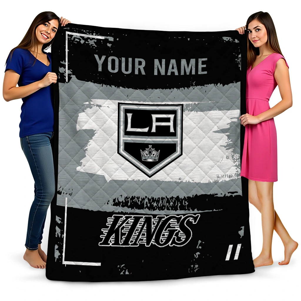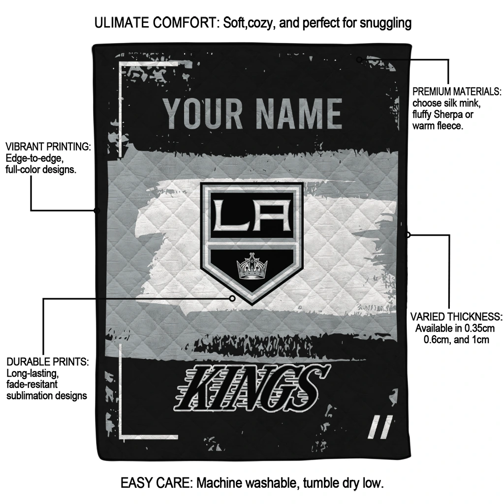 Customized Los Angeles Kings Grunge Patch Black White Quilt Blanket