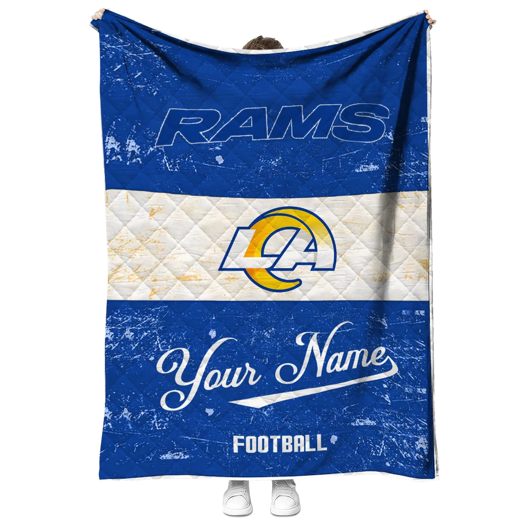 Customized Los Angeles Rams Hibiscus Burst Blue White Quilt Blanket