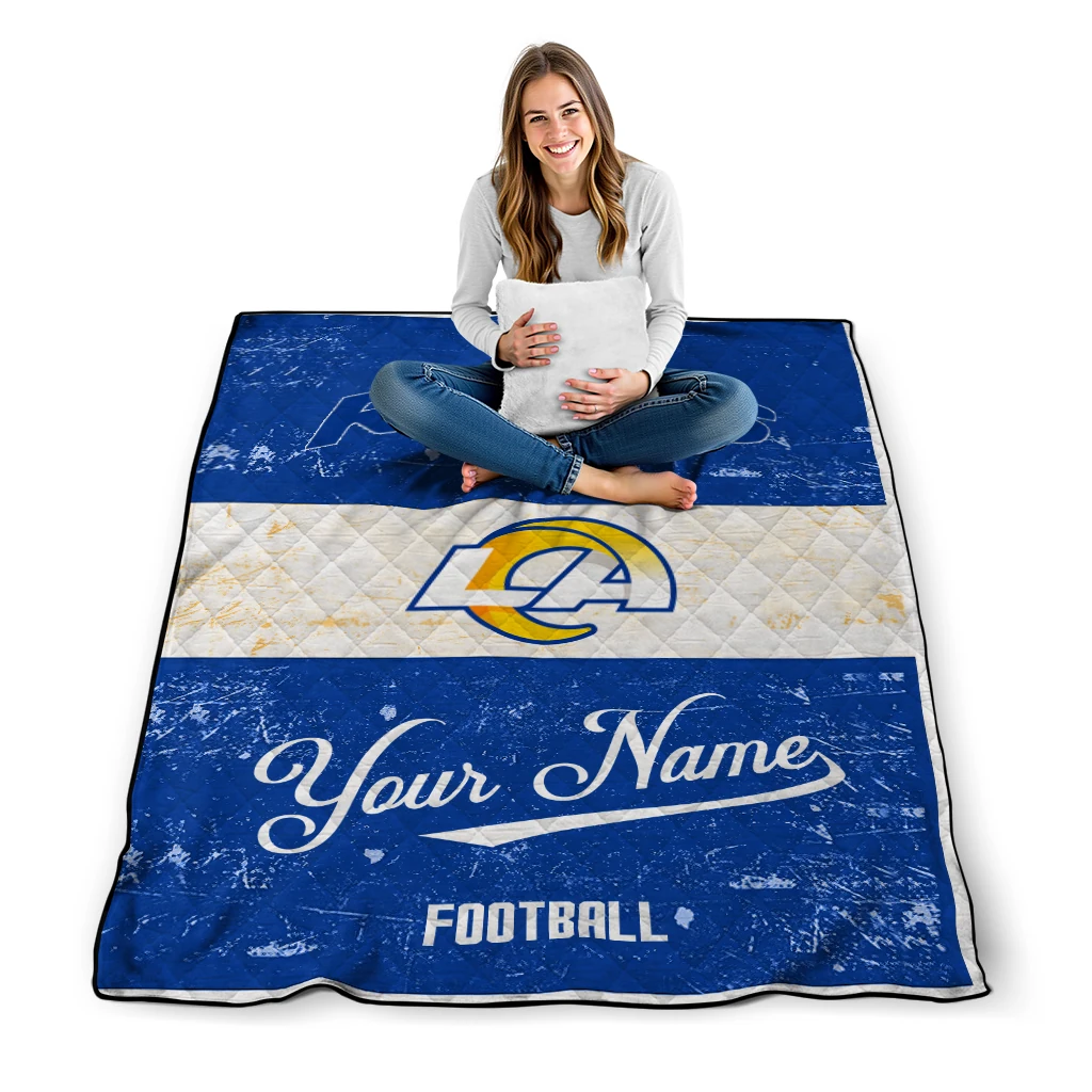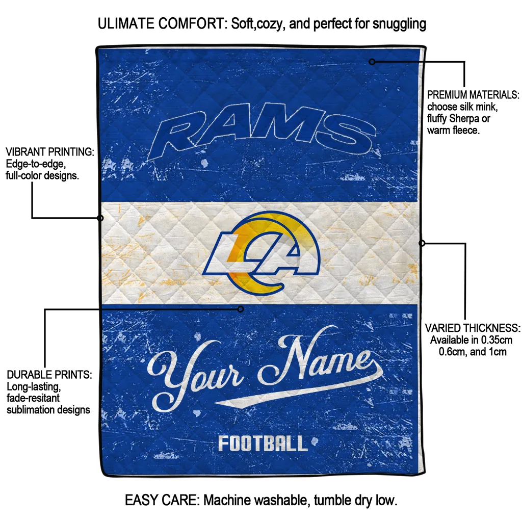 Wrap yourself in warmth and pride with the Customized Los Angeles Rams Hibiscus Burst Blue White Quilt Blanket from the Los Angeles Rams Blankets collection at Yes That Blanket. Made from 100% premium quilting-weight polyester blended with a touch of microfiber, this quilt offers a smooth, soft finish you’ll love. Choose between two quilting styles—Stipple or Diagonal—and enjoy the comfort of a cotton-filled layer inside that adds extra coziness for every season. The border is available in classic black or white, giving your design a clean, timeless edge.