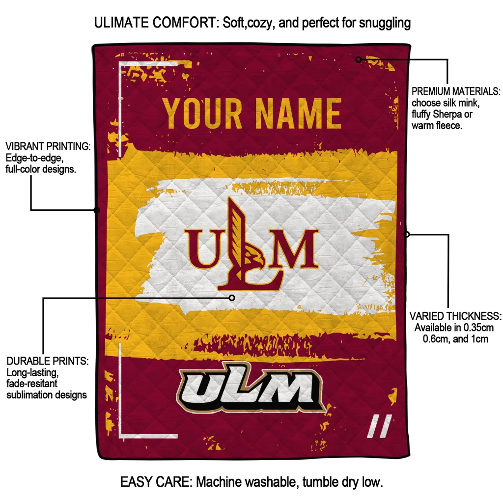 The Customized Louisiana-Monroe Warhawks Grunge Patch Red White Quilt Blanket is more than a blanket—it’s everyday comfort, thoughtfully made. Crafted from premium quilting fabric with a soft microfiber touch, it offers a smooth hand-feel and lasting coziness. Layered quilting with a cotton-filled core provides adaptable warmth across seasons while maintaining a clean, tailored look on your bed or sofa.