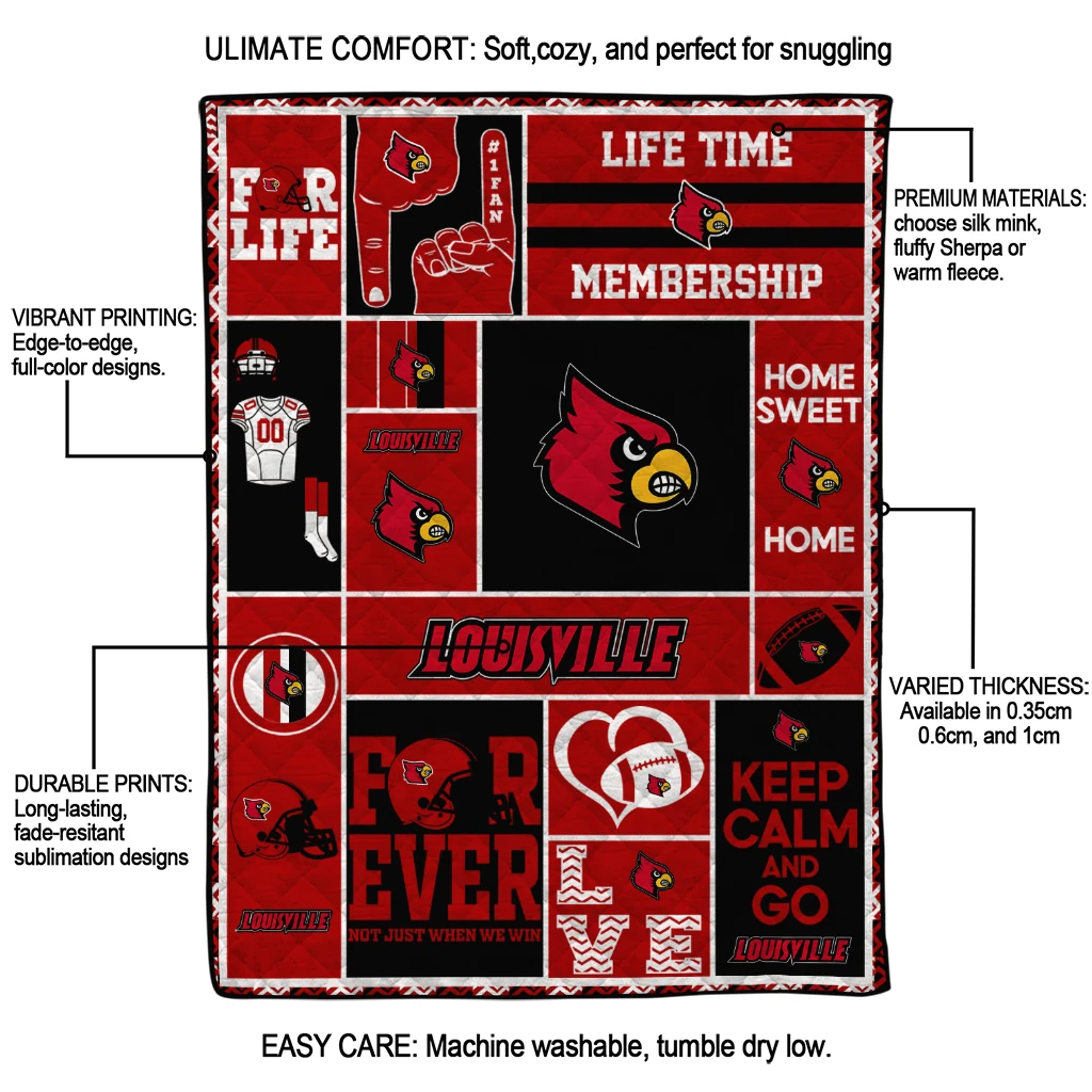 Customized Louisville Cardinals Helmet Passion Red Quilt Blanket