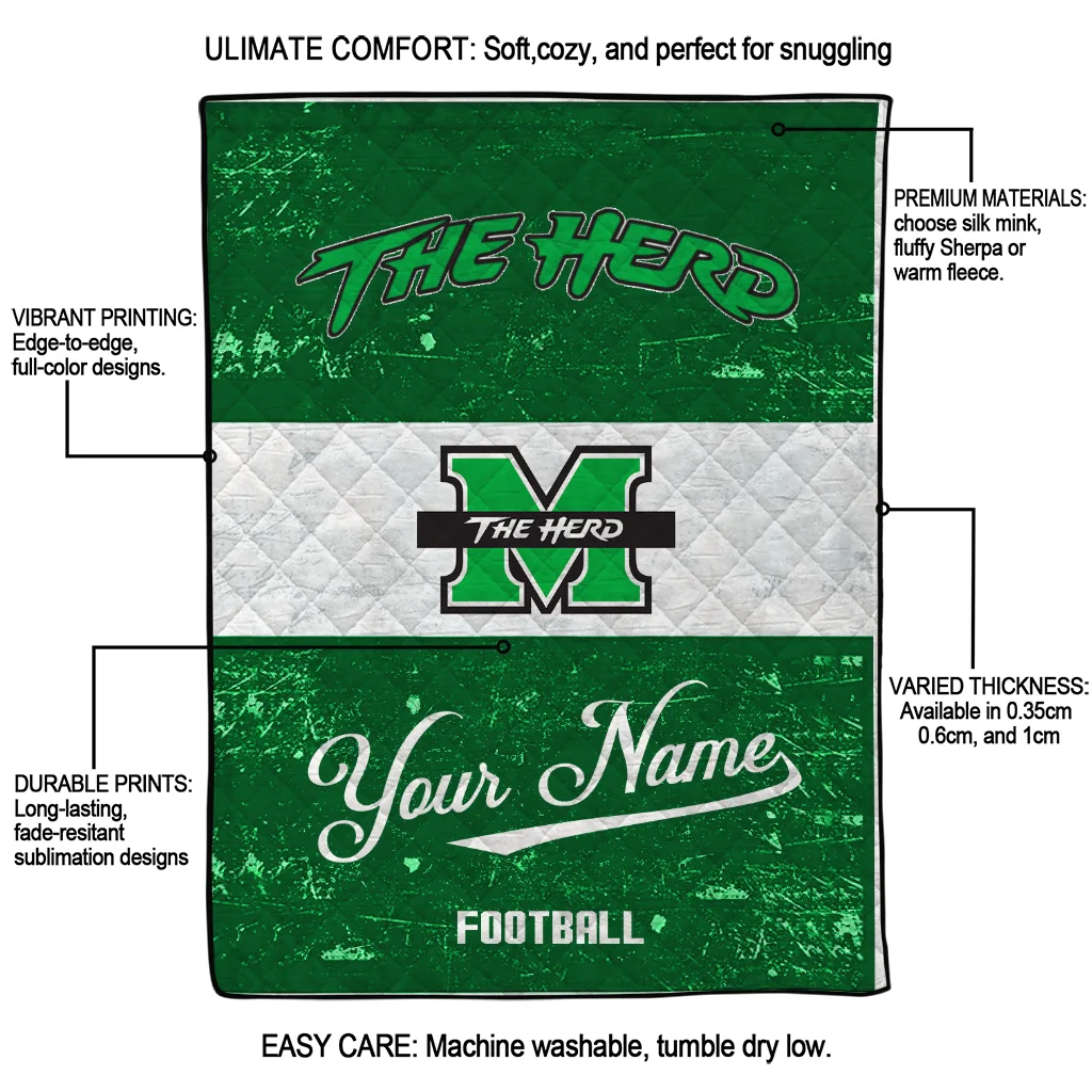 Customized Marshall Thundering Herd Hibiscus Burst Green White Quilt Blanket