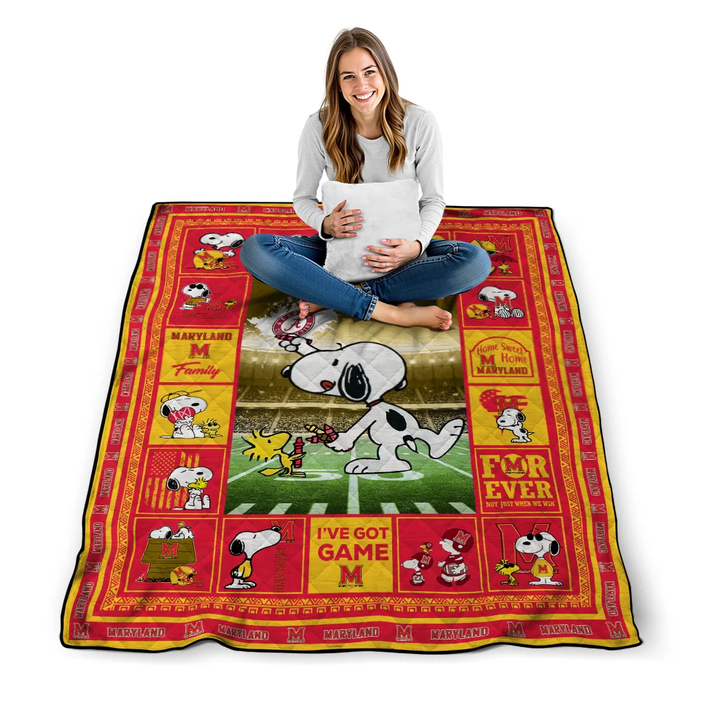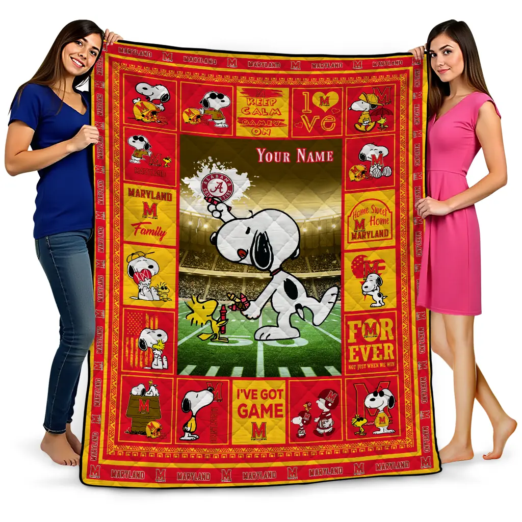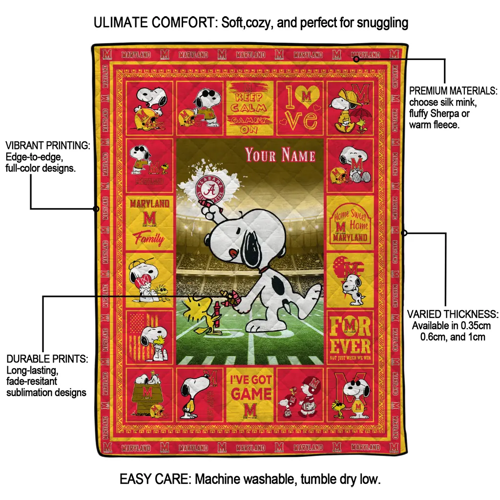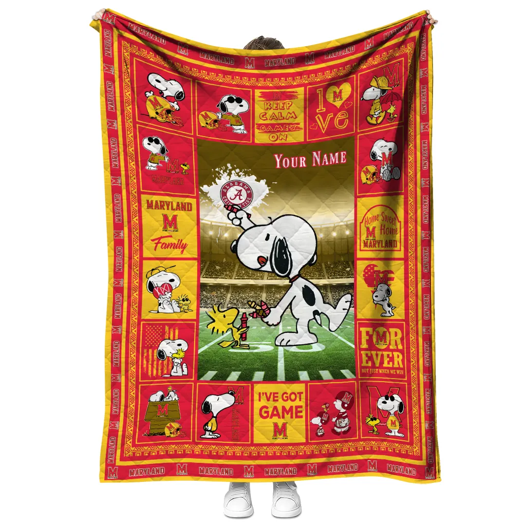 Customized Maryland Terrapins Snoopy Coach Red Quilt Blanket