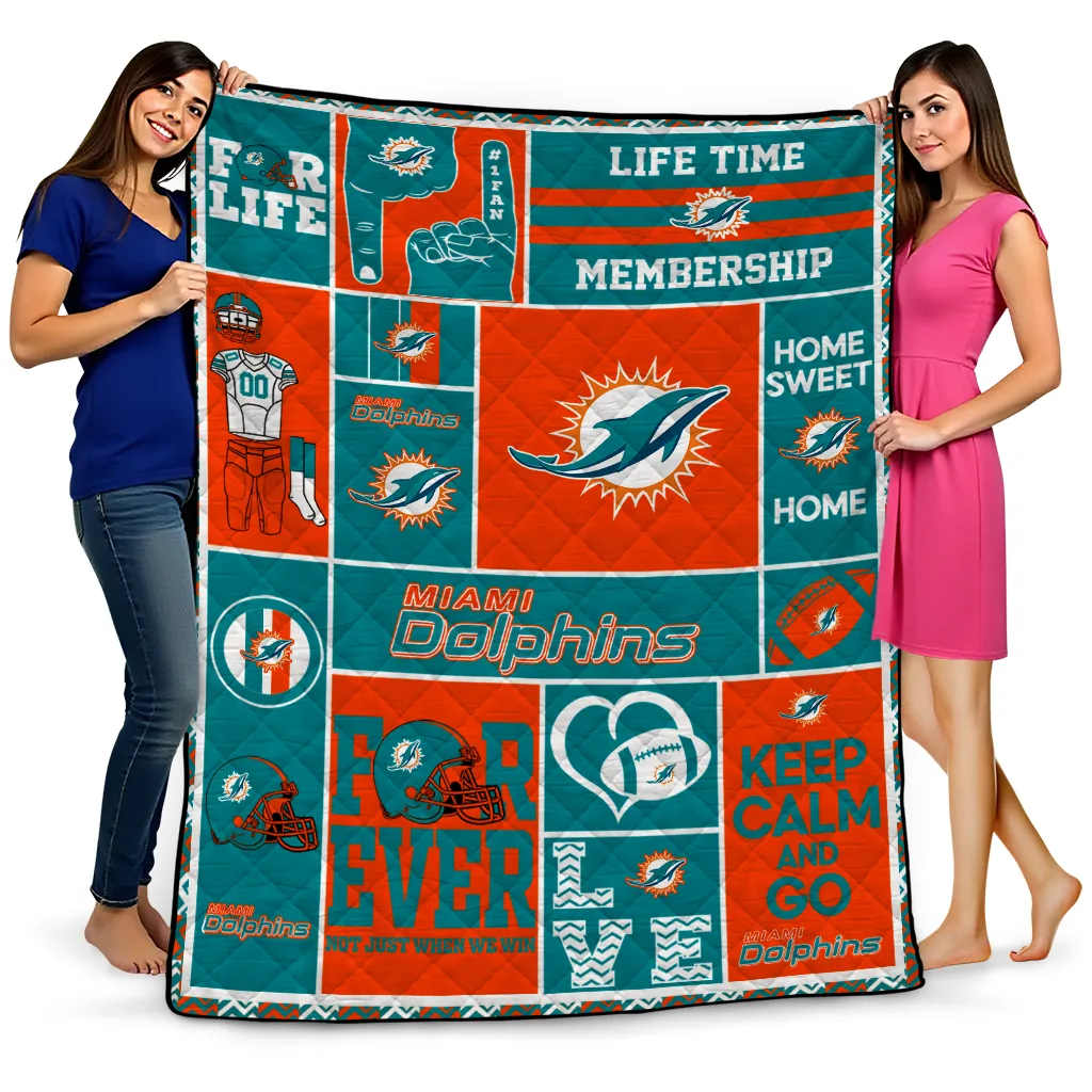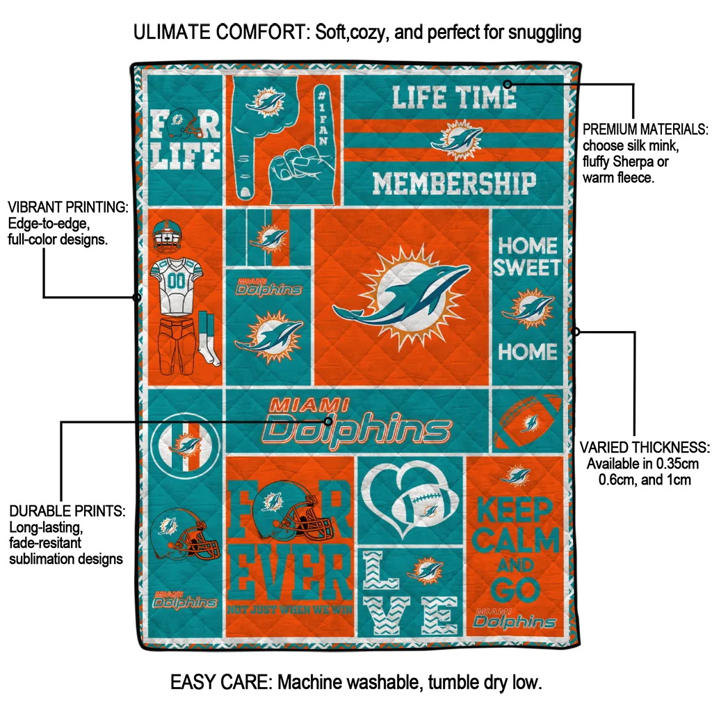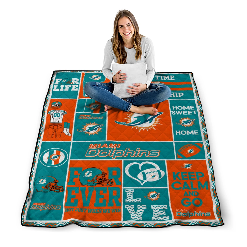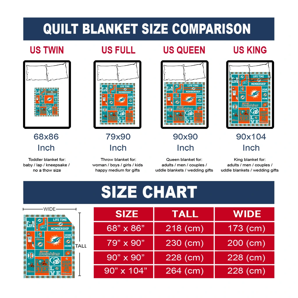 The Customized Miami Dolphins Helmet Passion Aqua Quilt Blanket is more than a blanket—it’s everyday comfort, thoughtfully made. Crafted from premium quilting fabric with a soft microfiber touch, it offers a smooth hand-feel and lasting coziness. Layered quilting with a cotton-filled core provides adaptable warmth across seasons while maintaining a clean, tailored look on your bed or sofa.
