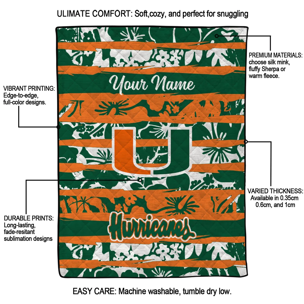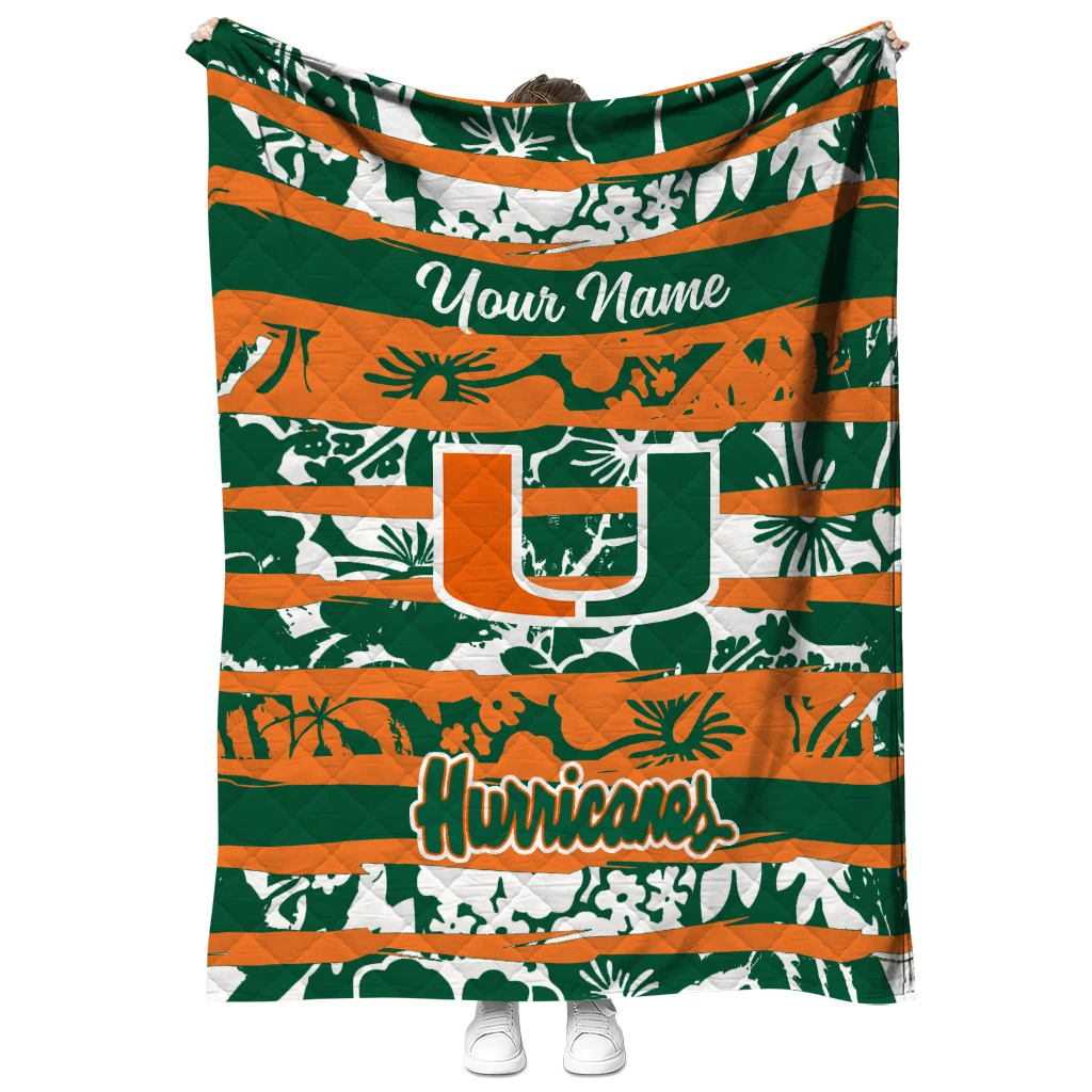 Customized Miami Hurricanes Layered Florals Orange White Quilt Blanket