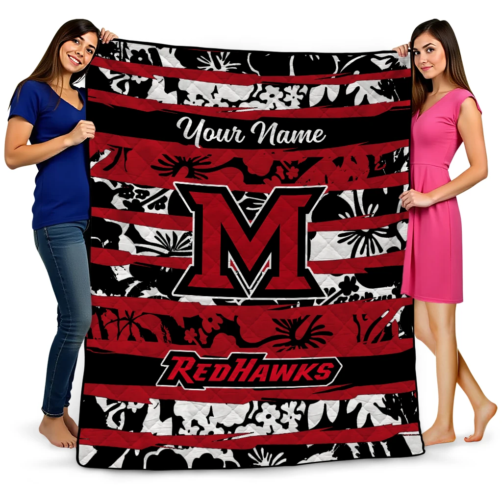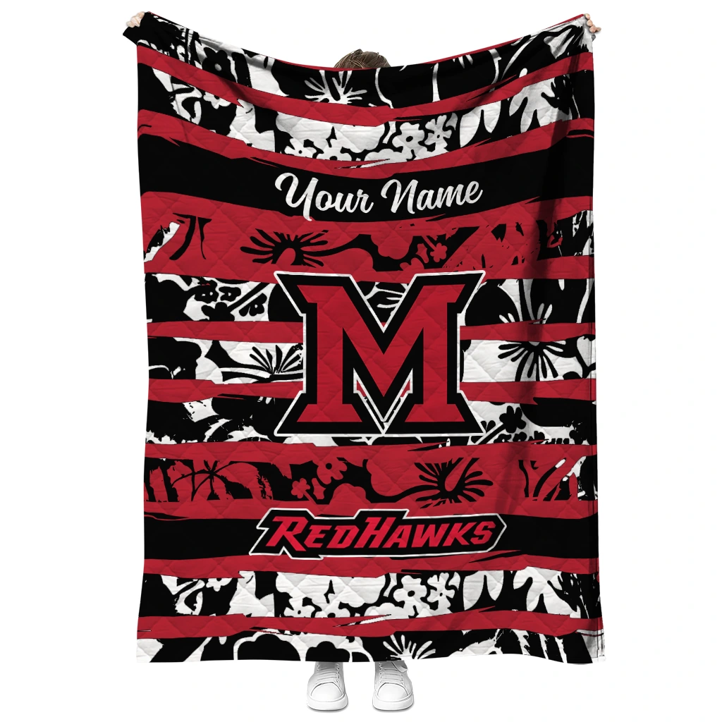 Wrap yourself in warmth and pride with the Customized Miami RedHawks Layered Florals Red White Quilt Blanket from the Miami RedHawks Blankets collection at Yes That Blanket. Made from 100% premium quilting-weight polyester blended with a touch of microfiber, this quilt offers a smooth, soft finish you’ll love. Choose between two quilting styles—Stipple or Diagonal—and enjoy the comfort of a cotton-filled layer inside that adds extra coziness for every season. The border is available in classic black or white, giving your design a clean, timeless edge.