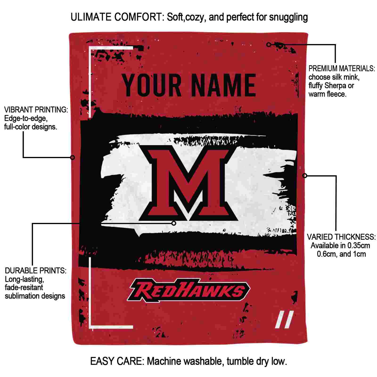 Without a doubt, the Customized Miami RedHawks Paint Strokes Red White Blanket from Miami RedHawks Blankets collection is offering true fans a chance to showcase passion in a cool way. Personalize it with your favorite team's logo or a meaningful name to make it uniquely yours. Isn't that great? The full-color print ensures vibrant, edge-to-edge designs, bringing your sports enthusiasm to life!
