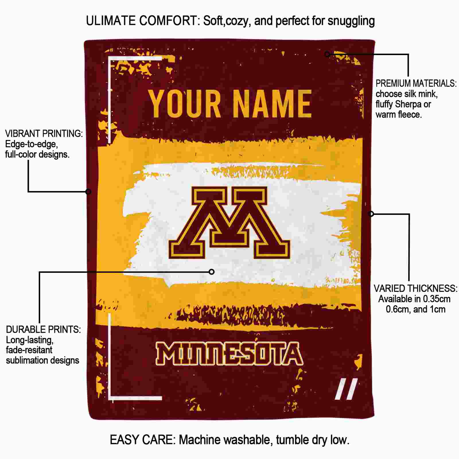 Customized Minnesota Golden Gophers Paint Strokes Maroon White Blanket