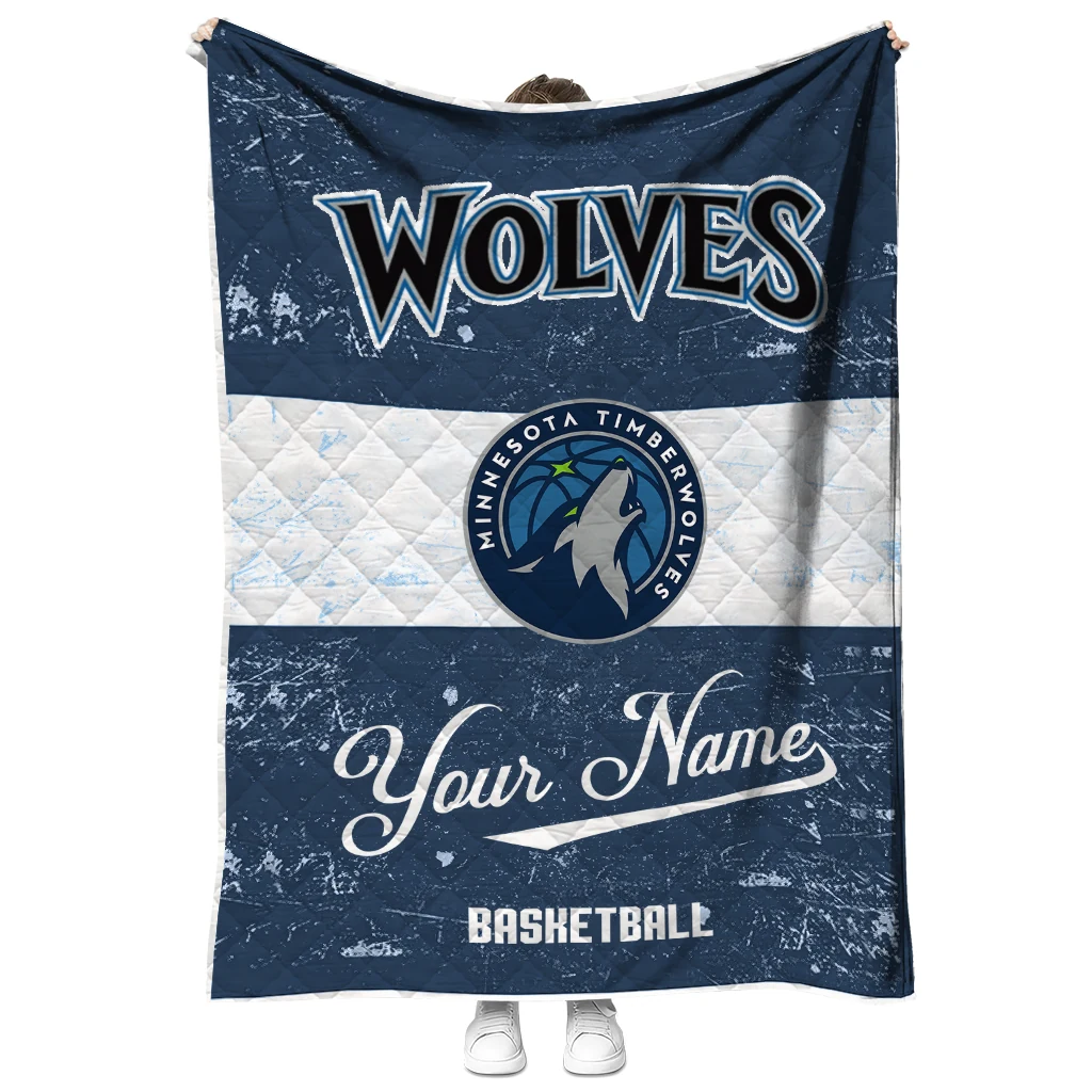 Customized Minnesota Timberwolves Helmet Fan Midnight Blue White Quilt Blanket