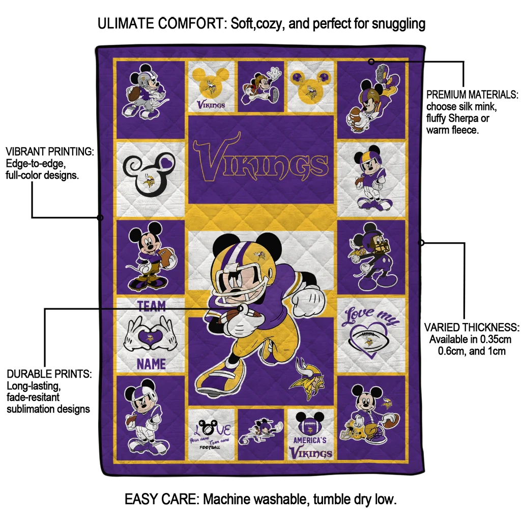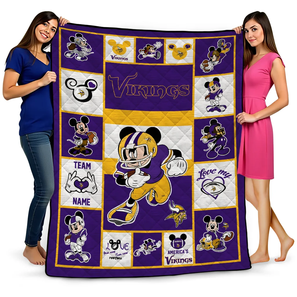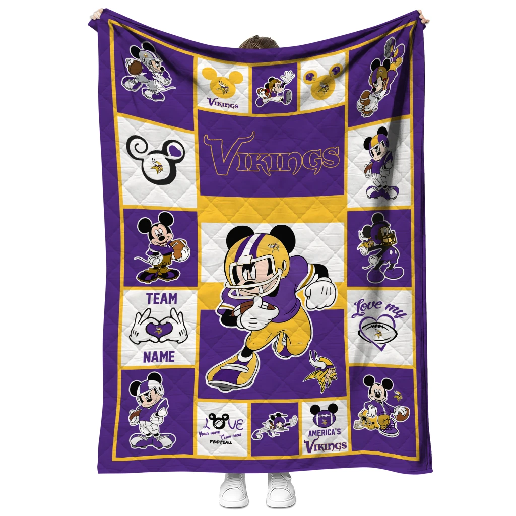Customized Minnesota Vikings Mickey Crimson Purple White Quilt Blanket