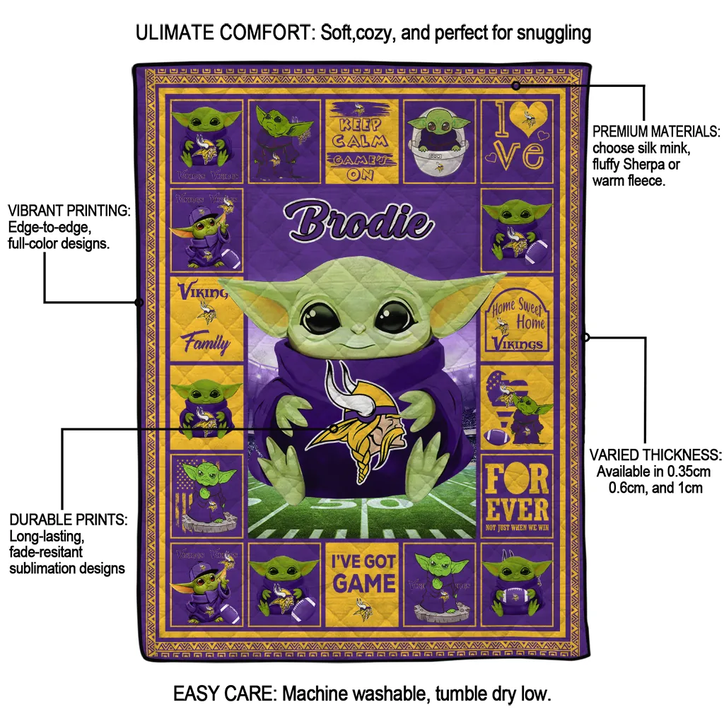 Customized Minnesota Vikings Yody Baby Pattern Purple Quilt Blanket