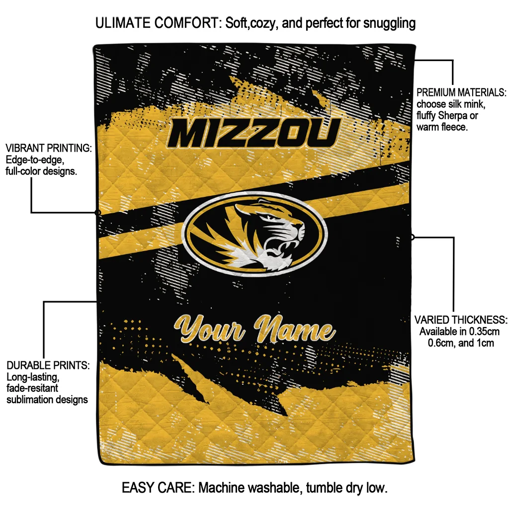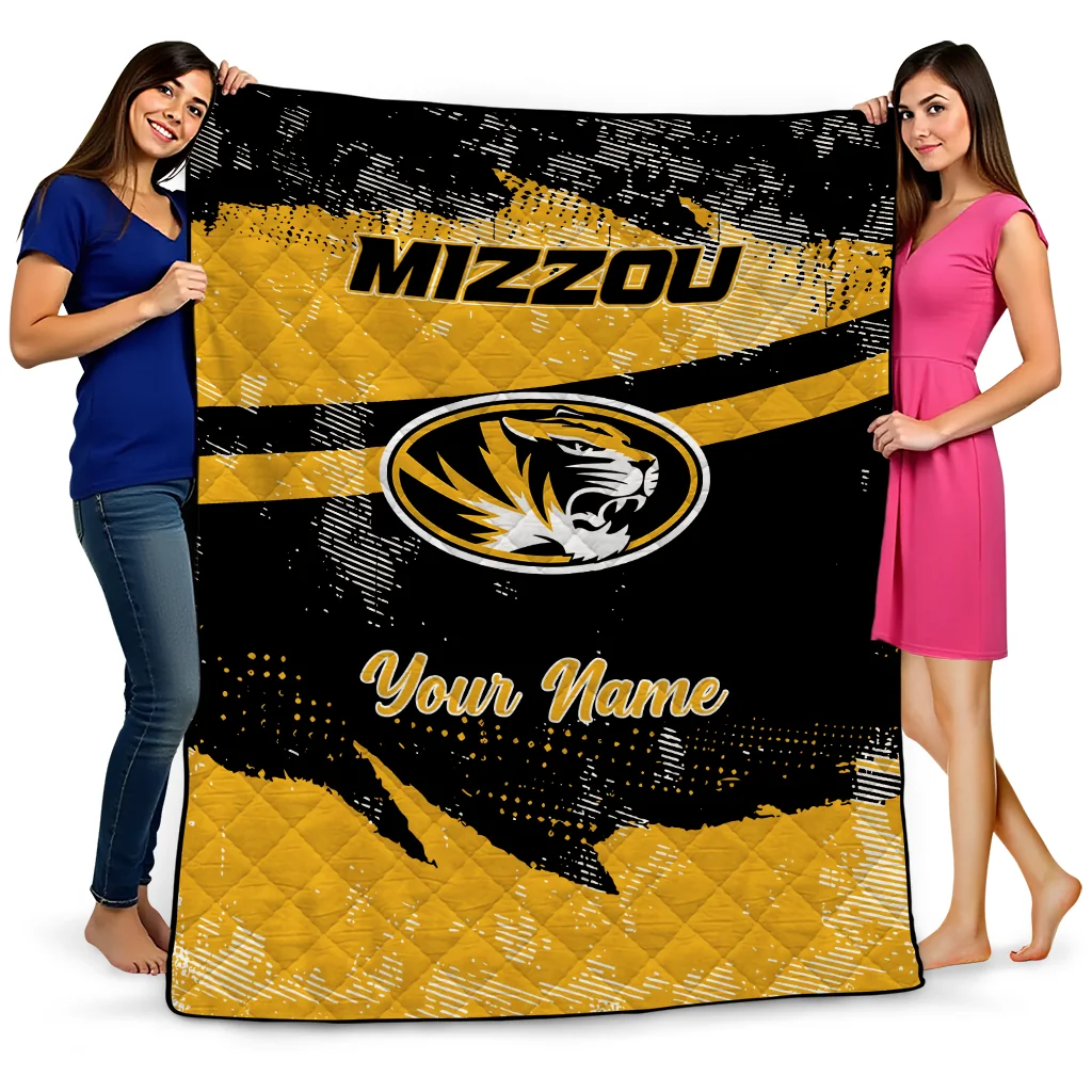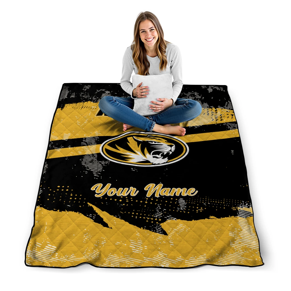 Customized Missouri Tigers Brushstroke Layers Black Quilt Blanket