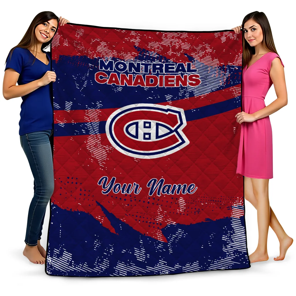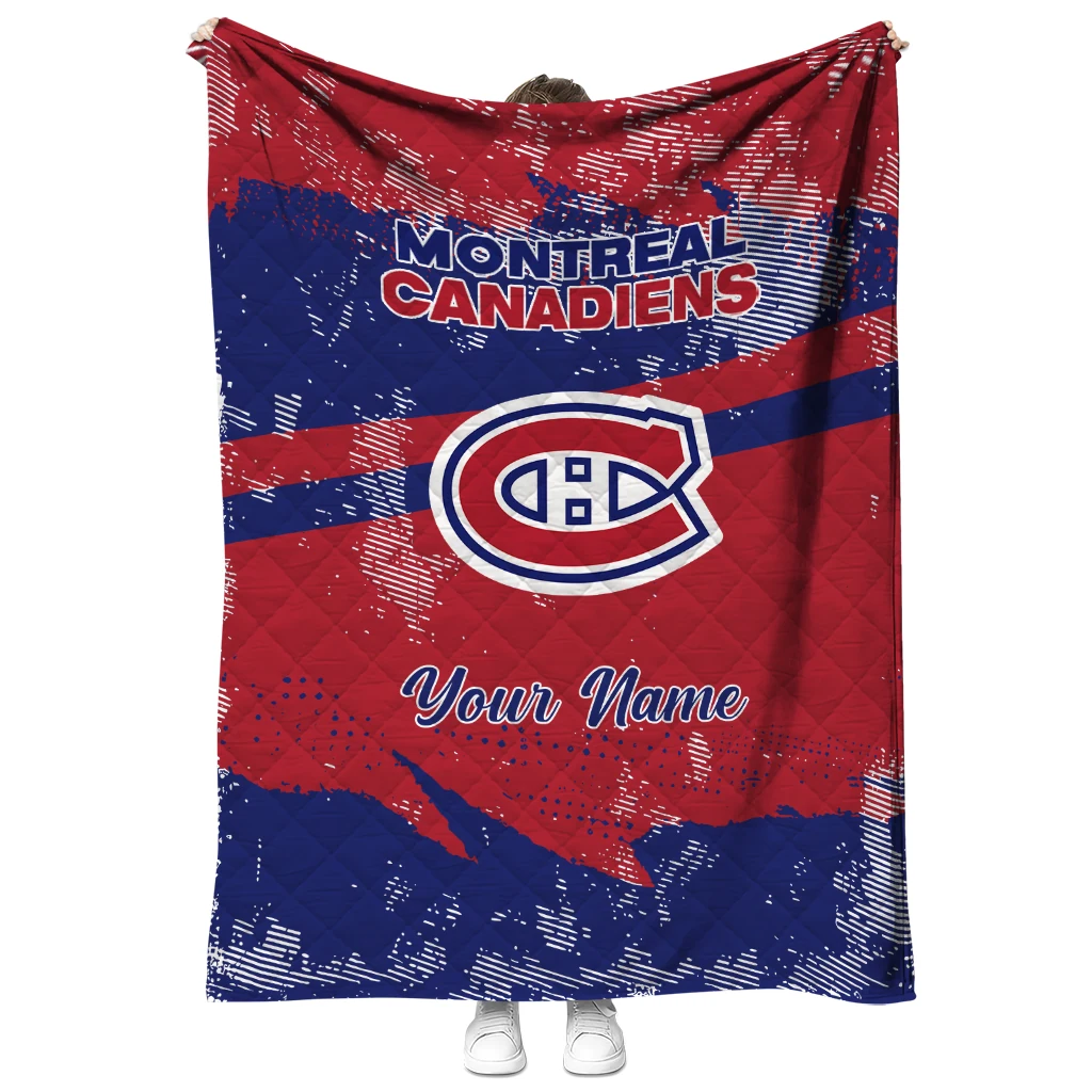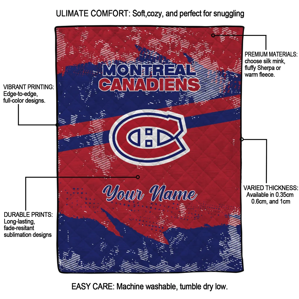 Wrap yourself in warmth and pride with the Customized Montreal Canadiens Brushstroke Layers Red Quilt Blanket from the Montreal Canadiens Blankets collection at Yes That Blanket. Made from 100% premium quilting-weight polyester blended with a touch of microfiber, this quilt offers a smooth, soft finish you’ll love. Choose between two quilting styles—Stipple or Diagonal—and enjoy the comfort of a cotton-filled layer inside that adds extra coziness for every season. The border is available in classic black or white, giving your design a clean, timeless edge.