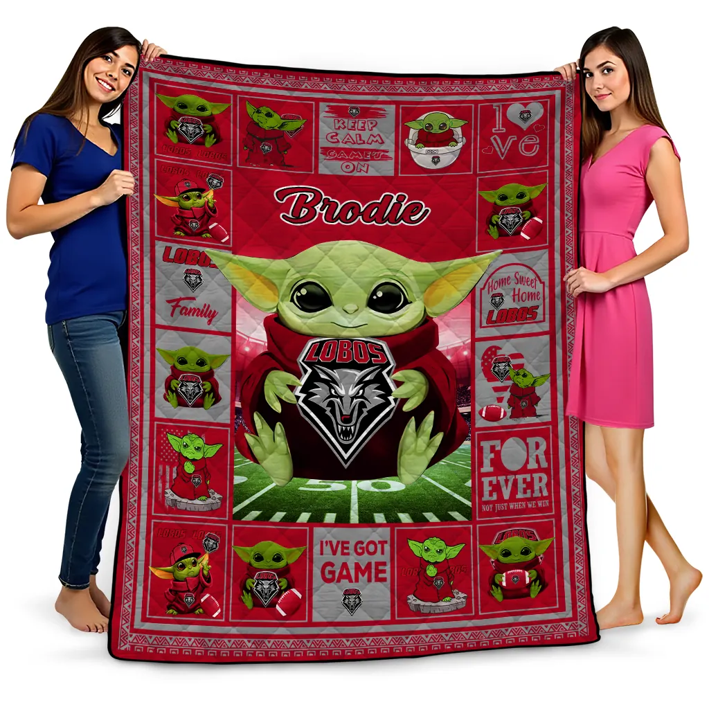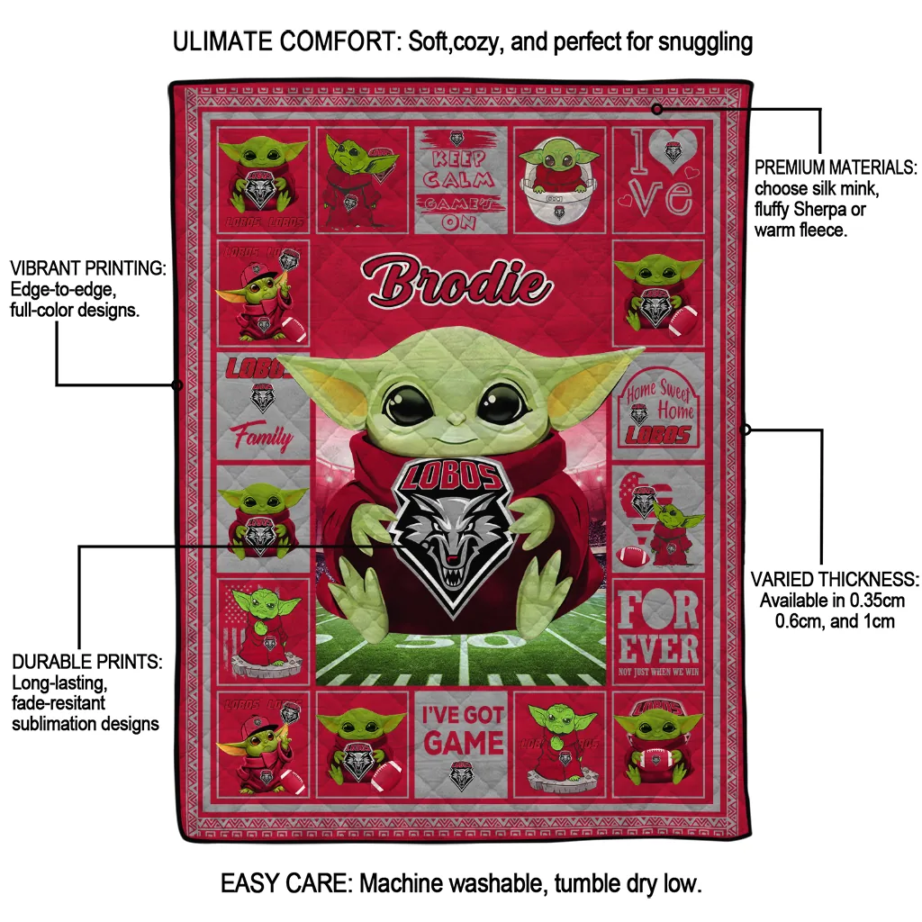 Wrap yourself in warmth and pride with the Customized New Mexico Lobos Yody Baby Pattern Red Quilt Blanket from the New Mexico Lobos Blankets collection at Yes That Blanket. Made from 100% premium quilting-weight polyester blended with a touch of microfiber, this quilt offers a smooth, soft finish you’ll love. Choose between two quilting styles—Stipple or Diagonal—and enjoy the comfort of a cotton-filled layer inside that adds extra coziness for every season. The border is available in classic black or white, giving your design a clean, timeless edge.