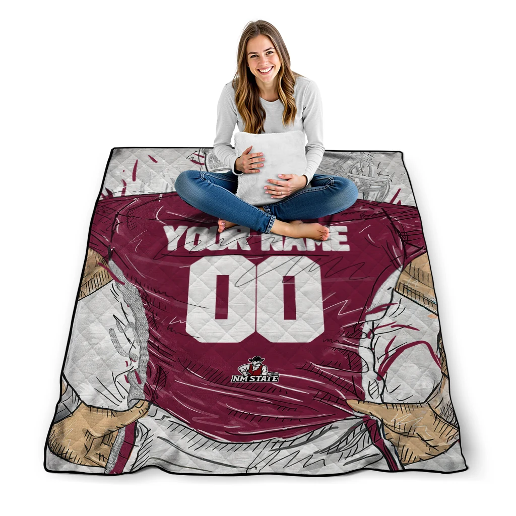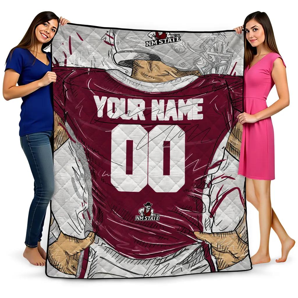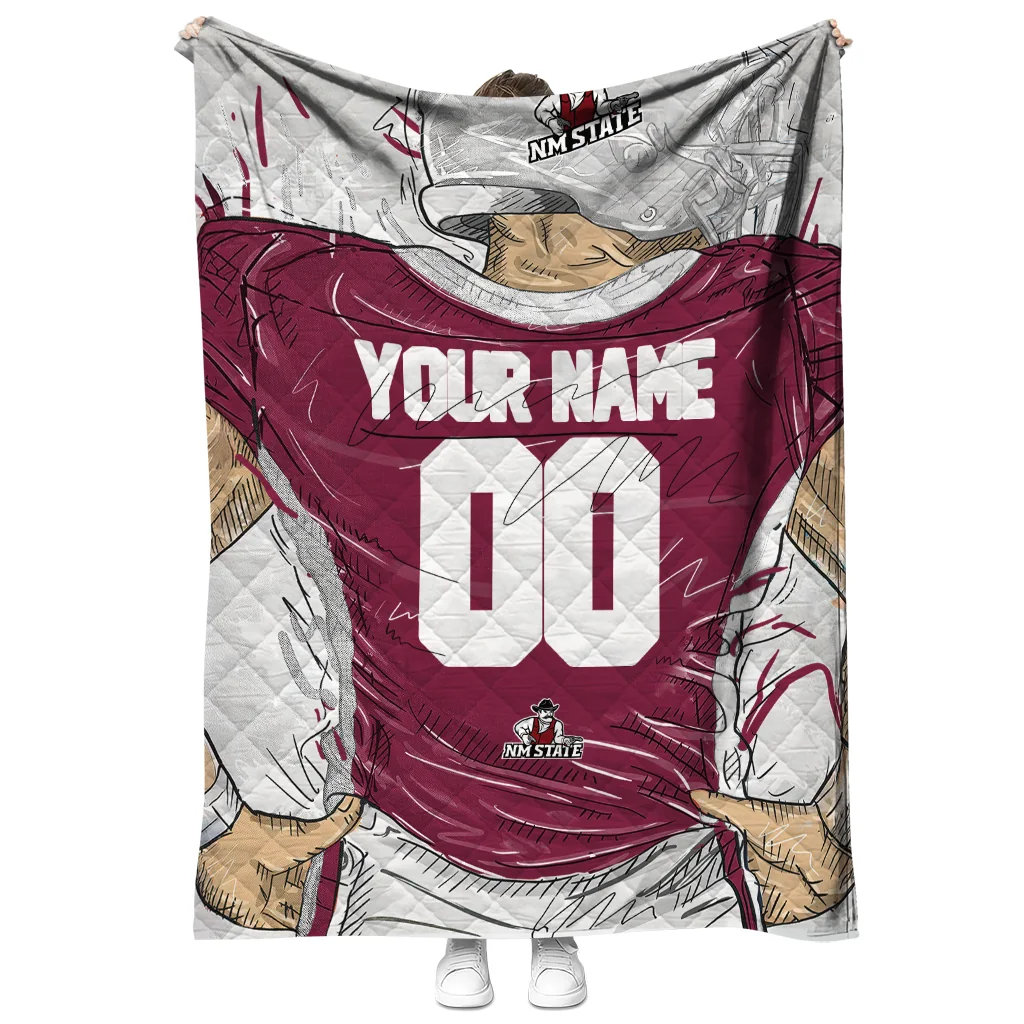 Customized New Mexico State Aggies Player Sketch Crimson Gray Quilt Blanket