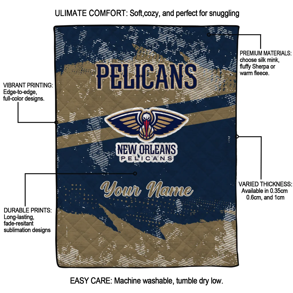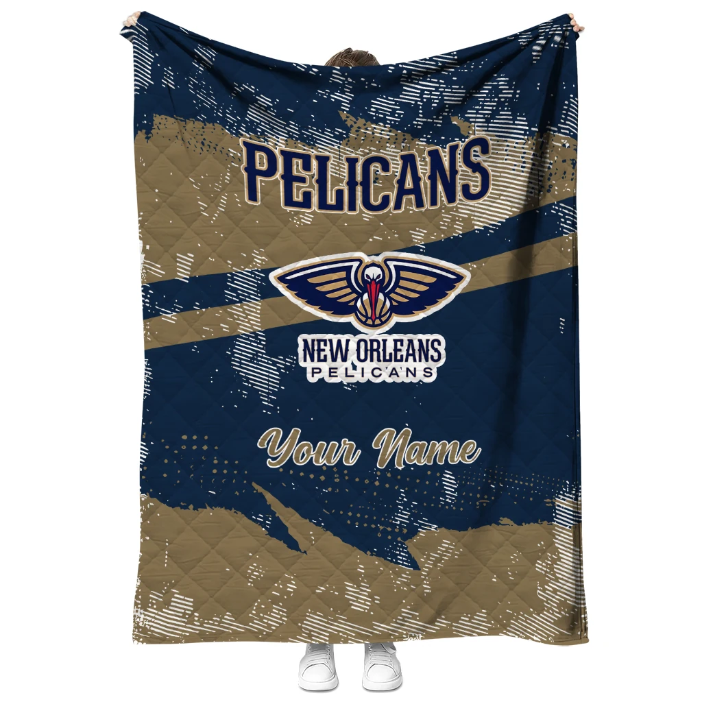 Customized New Orleans Pelicans Brushstroke Layers Navy Quilt Blanket