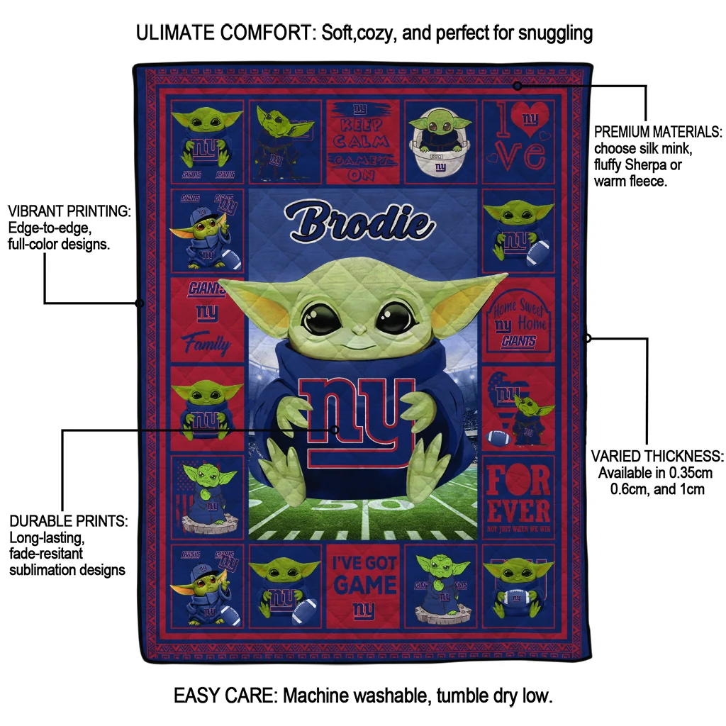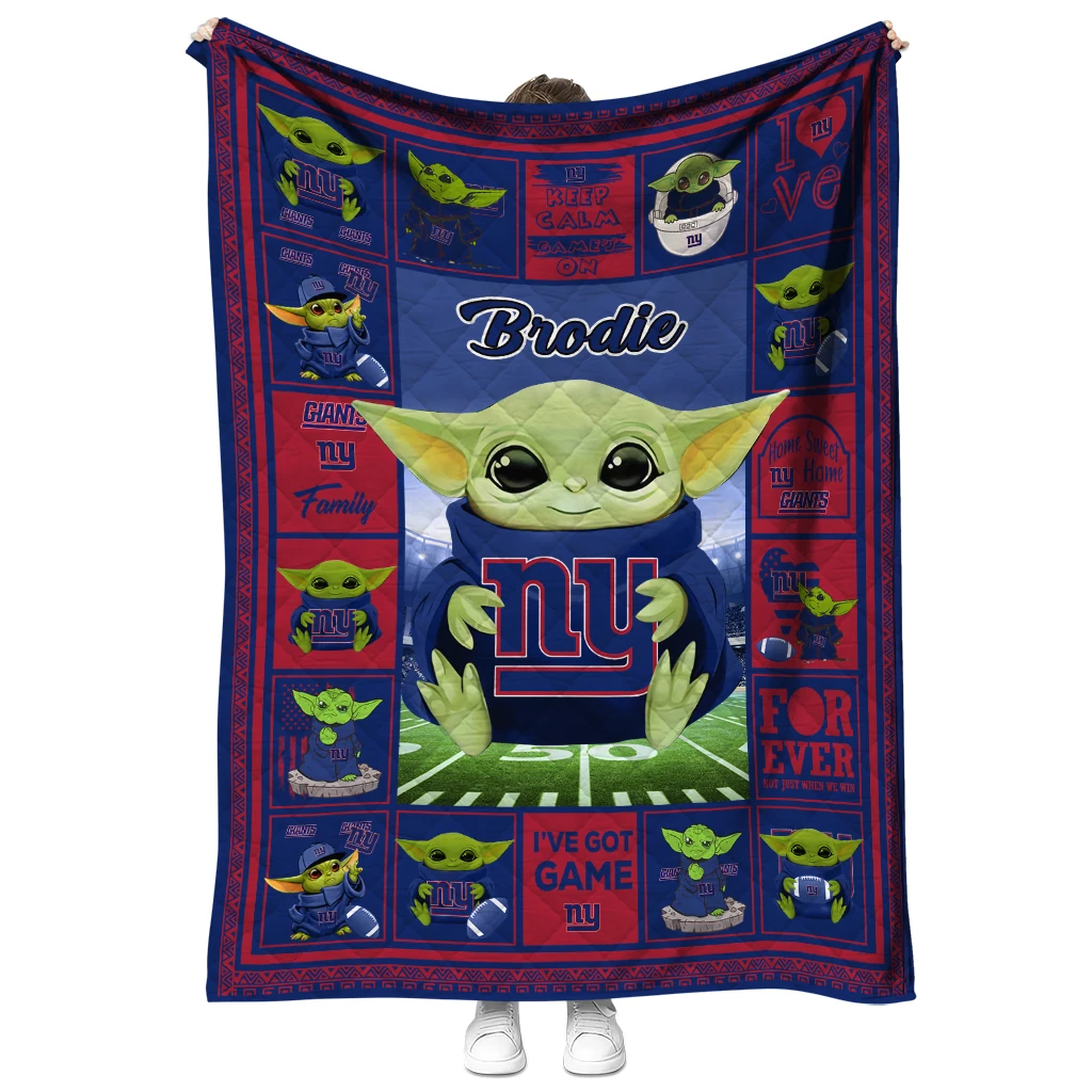 Customized New York Giants Yody Baby Pattern Blue Quilt Blanket