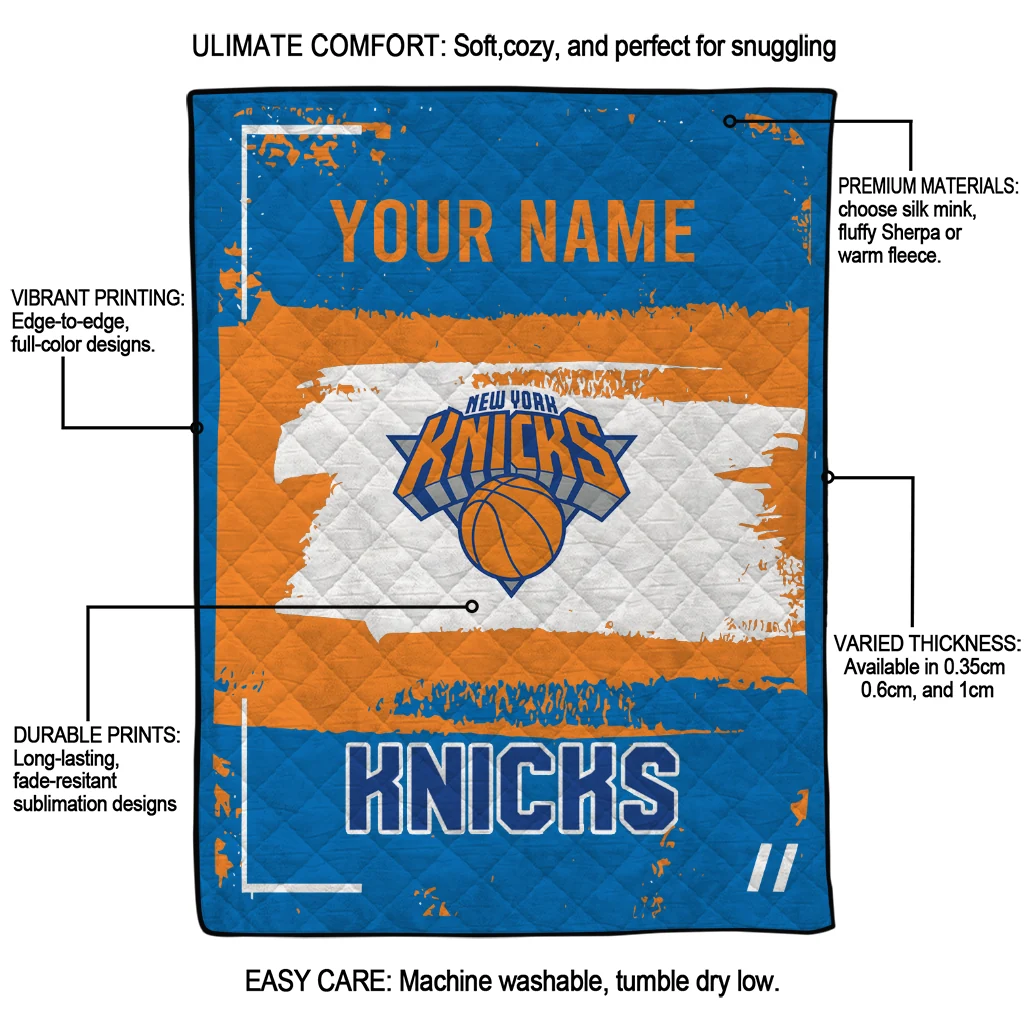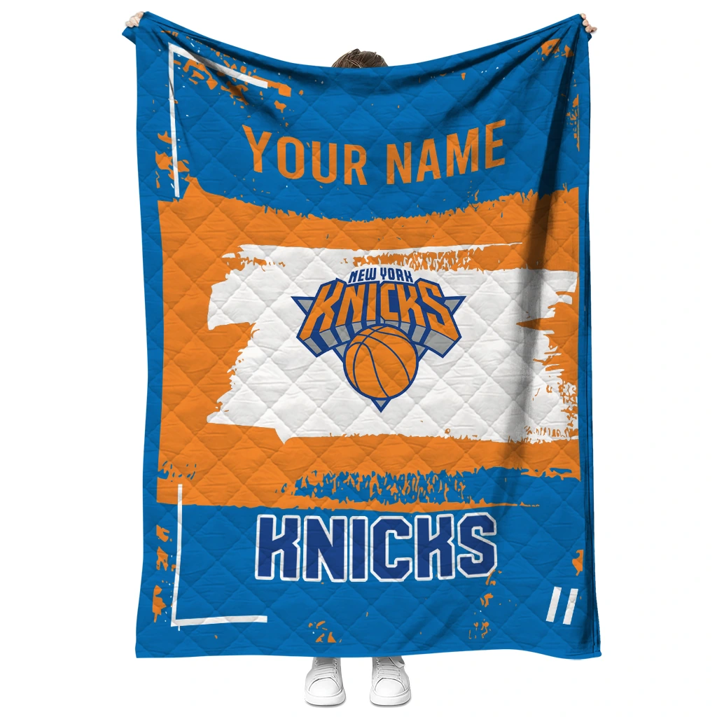 Customized New York Knicks Grunge Patch Blue White Quilt Blanket
