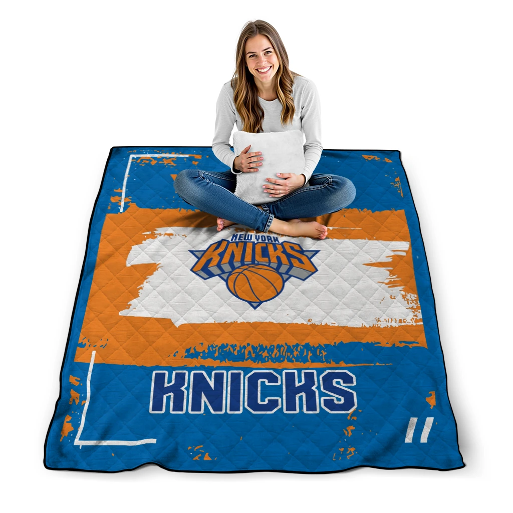 The Customized New York Knicks Grunge Patch Blue White Quilt Blanket is more than a blanket—it’s everyday comfort, thoughtfully made. Crafted from premium quilting fabric with a soft microfiber touch, it offers a smooth hand-feel and lasting coziness. Layered quilting with a cotton-filled core provides adaptable warmth across seasons while maintaining a clean, tailored look on your bed or sofa.