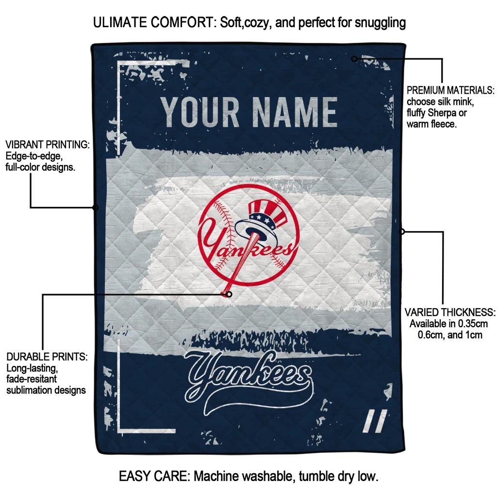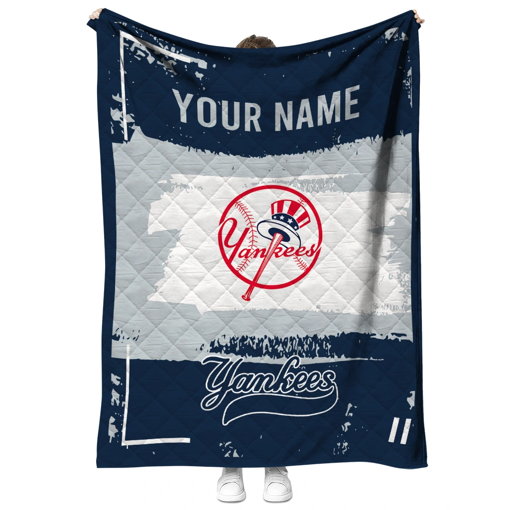 Customized New York Yankees Grunge Patch Navy White Quilt Blanket