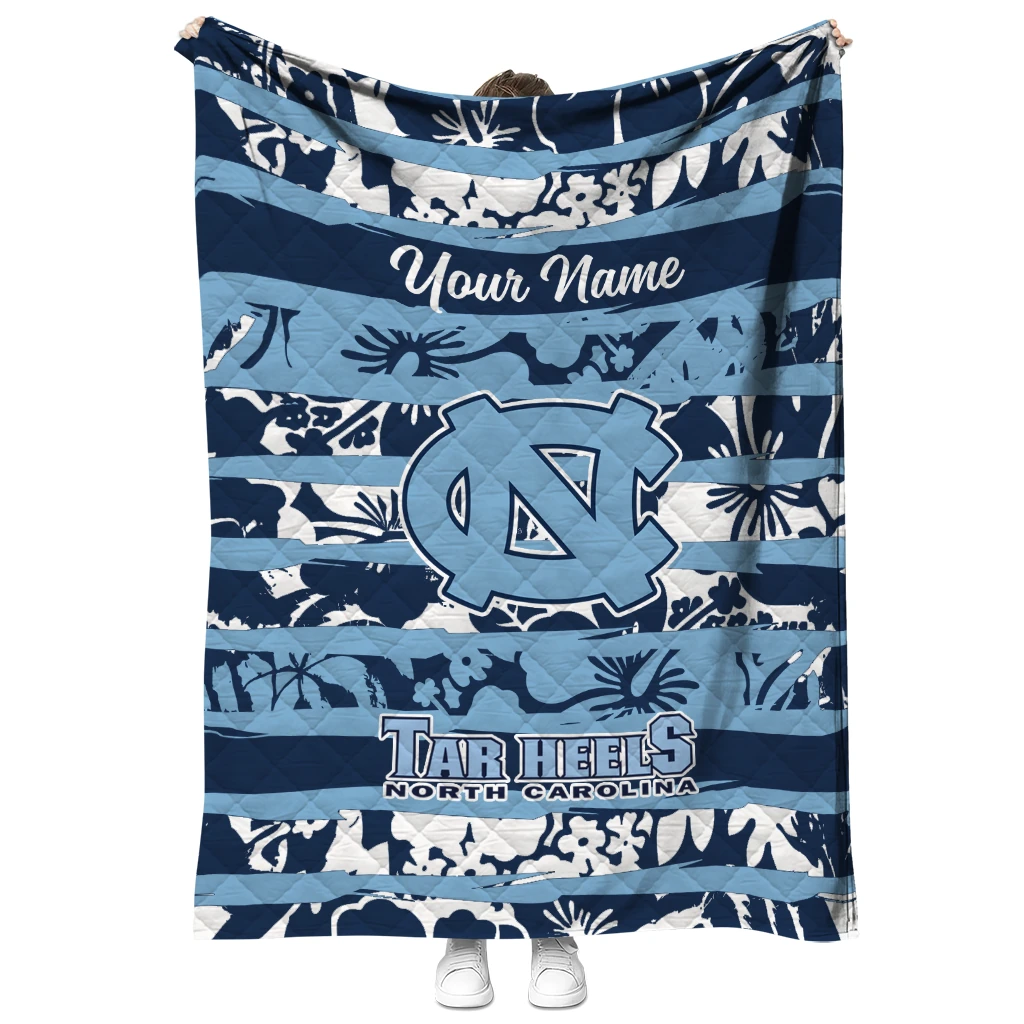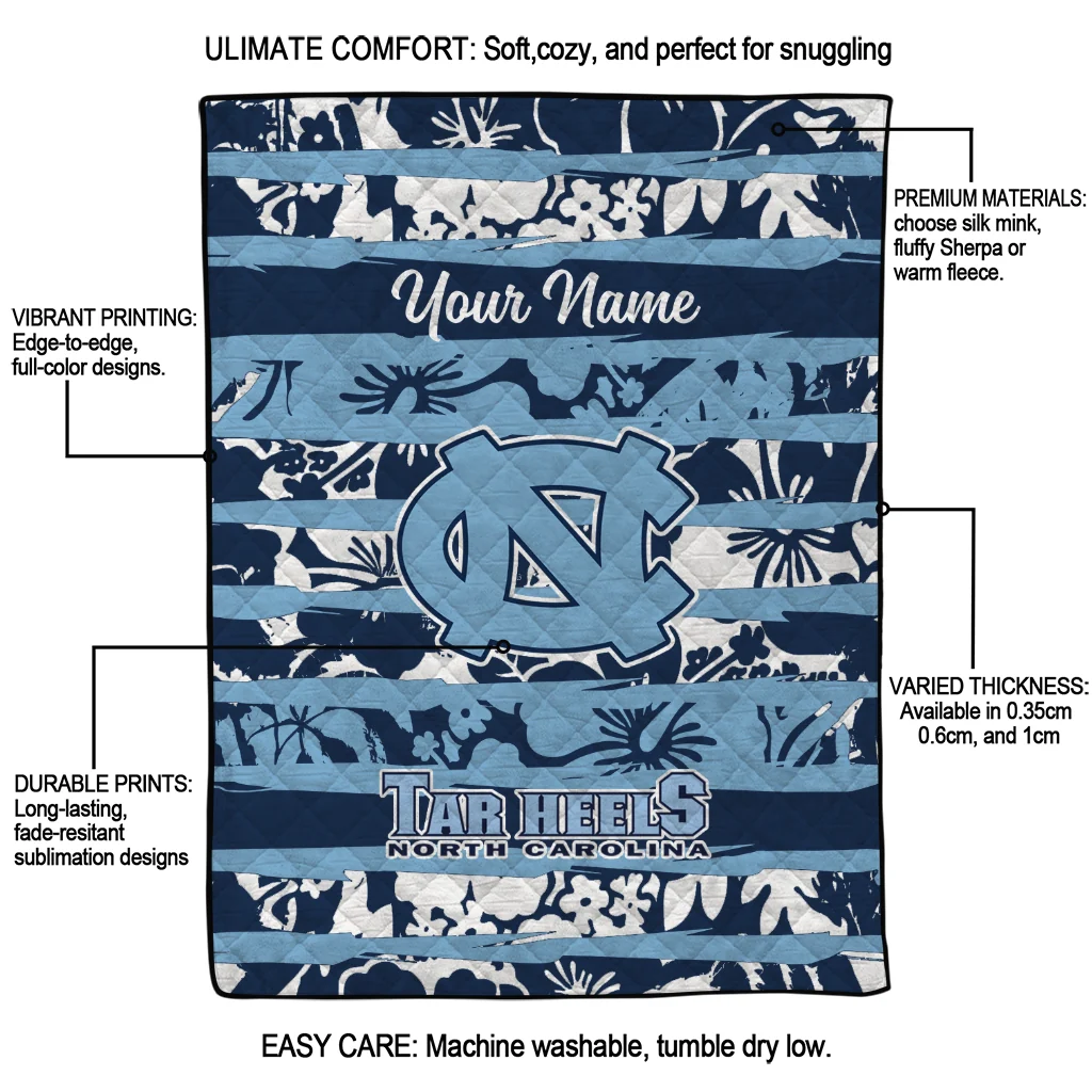 Wrap yourself in warmth and pride with the Customized North Carolina Tar Heels Layered Florals Light Blue White Quilt Blanket from the North Carolina Tar Heels Blankets collection at Yes That Blanket. Made from 100% premium quilting-weight polyester blended with a touch of microfiber, this quilt offers a smooth, soft finish you’ll love. Choose between two quilting styles—Stipple or Diagonal—and enjoy the comfort of a cotton-filled layer inside that adds extra coziness for every season. The border is available in classic black or white, giving your design a clean, timeless edge.